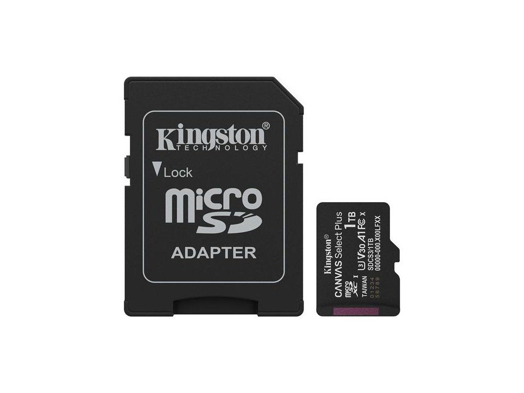 1 TB . microSDXC karta Kingston Canvas Select Plus U3, V30, A1 (r/w 150MB/s) + adapter SDCS3-1TB
