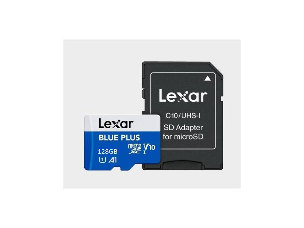 128GB Lexar® Blue Plus microSDHC UHS-I with SD adapter, up to 170MB/s read C10 A1 V10 U1 LMSBLPL128G-BNANG