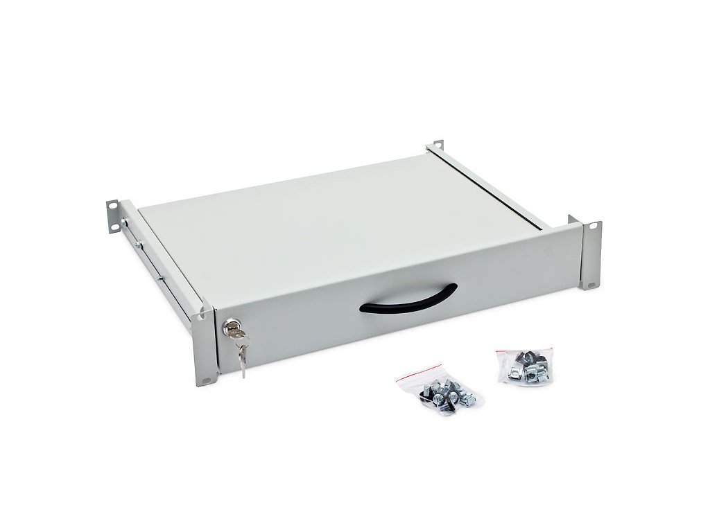 Triton, RAB-UP-X29-A1 Výsuvná uzamykatelná 19´´ police 2U pro klávesnici a myš, uzamykatelná, hloubka zasunuté police je 371,5 mm Příbal: montážní materiálbarva: černáilustrační obrázek