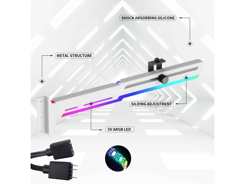 1stCOOL GPU Holder ARGB - držiak VGA kovový nastaviteľný biely UP-H02-W-ARGB 1stCool