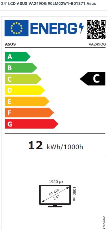 ASUS VA249QG Eye Care Gaming Monitor Displej: Velikost panelu (v palcích): 23,8 Poměr stran: 16:9 Zobrazovací plocha (š x v): 527,04 x 296,46 mm Povrch displeje: Antireflexní (matný) Typ podsvícení: LED Typ panelu: IPS Pozorovací úhly (CR >= 10, horizontálně/vertikálně): 178° / 178° Rozteč pixelů: 0,2745 mm Rozlišení: 1920 x 1080 Barevný prostor (sRGB): 99 % Jas (typický): 300 cd/m2 Kontrastní poměr (maximální): 3000:1 Kontrastní poměr (typický): 1500:1 Počet zobrazených barev: 16,7 milionu Odezva: 1 ms (MPRT) Maximální obnovovací frekvence: 120 Hz Flicker-Free: Ano Vlastnosti: Technologie Trace Free: Ano Technologie SPLENDID: Ano Výběr barevné teploty: Ano (4 režimy) GamePlus: Ano QuickFit: Ano HDCP: Ano, 1.4 Technologie VRR: Ano (Adaptive-Sync) Motion Sync: Ano DisplayWidget: Ano, DisplayWidget Center Low Blue Light: Ano Technologie Eye Care+: Ano Audio: Reproduktory: Ano (2 W x 2) I/O porty: DisplayPort 1.2 × 1 HDMI (verze 1.4) × 1 VGA × 1 Sluchátkový výstup: Ano Mechanický design: Náklon: Ano (+23° ~ -5°) Nastavení výšky: Ne Uchycení na zeď (VESA): 100×100 mm Zámek Kensington: Ano