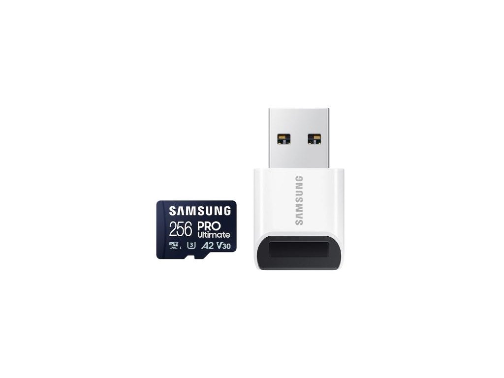 256 GB . microSDXC karta Samsung PRO Ultimate + USB adapter (U3, V30, A2), (r200MB/s, w130MB/s) MB-MY256SB-WW