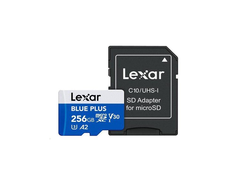 256GB Lexar® Blue Plus microSDHC UHS-I with SD adapter, up to 170MB/s read C10 A1 V10 U1 LMSBLPL256G-BNANG