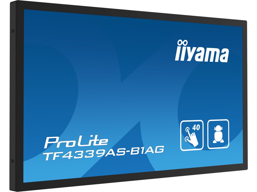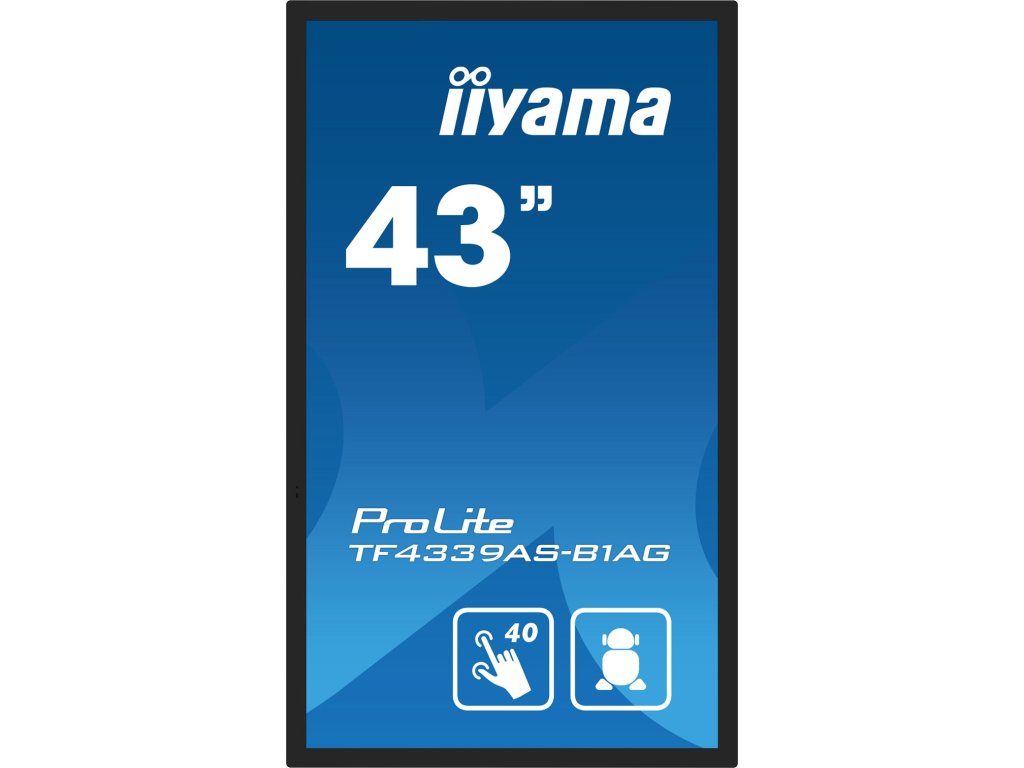 PROLITE TF4339AS-B1AG 43'' All-in-One PCAP interaktivní displej inspirovaný technologií a navržený pro kreativní prostory a sdílení * Android OS * iiSignage2 * Signal FailOver * Dotkněte se skla * Huddle Spaces Parametry Displeje Design: Edge to edge glass, Open Frame Úhlopříčka: 42.5'', 108cm Panel: IPS LED, AG potažené sklo, s matnou povrchovou úpravou Podsvícení: LED Nativiní rozlišení: 3840 x 2160 @60Hz (8.3 megapixel 4K UHD) Poměr stran: 16:9 Jas: 435 kromě dotekového panelu Statický kontrast: 1200:1 Propustnost světla: 87% Doba odezvy: 8 Pozorovací úhly: 178/178 Rozsah barev: 16.7mln 8bit (72% NTSC) Rozteč bodů.: 0,245 Barva: černá, matná Dotyk Technologie doteku: bonded PCAP Body doteku: 40 Metoda doteku: stylus, prst, rukavice (latex) Rozhraní doteku: USB Funkce Operační systém: Android 11 OS CPU: A73*4+A53*4 GPU: G52 MP8 Uložiště: 32GB RAM: 4GB Provozní doba: 24/7 Konektory/Rozhraní/Ovládání *Digitánlní vstupní porty: HDMI x2 (2.0, max. 3840x2160 @60Hz), DisplayPort x1 (1.2, max. 3840x2160 @60Hz) *Řídící vstup monitoru: RS-232c x1 (Získat / Nastavit příkaz funkce), RJ45 (LAN) x1 (Control and Internet) *Audio Out: Mini jack x1, Reproduktory 2 x 10W *HDCP: 2.2 *USB Ports: x2 (2.0 x2 (Type A)) Mechanické Informace Montáž na zeď: 200 x 200mm Orientace: horizontální, vertikální, face-up Napájení Napájecí zdroj: Interní, AC 100 - 240V, 50/60Hz Spotřeba [W]: 116 Obsah balení: *Kabely: napájecí (1.8m), USB (1.8m), HDMI (1.8m), DP (1.8m) *Příručky: uživatelský manuál, instrukce bezpečnosti *Kryt kabelů: Ano *Dálkové ovládání: Ano (včetně baterie) Rozměry/Hmotnost Rozměry(ŠxVxH): 997.2 x 585.4 x 63.4mm Hmotnost: 22,1 Záruka: 3 roky