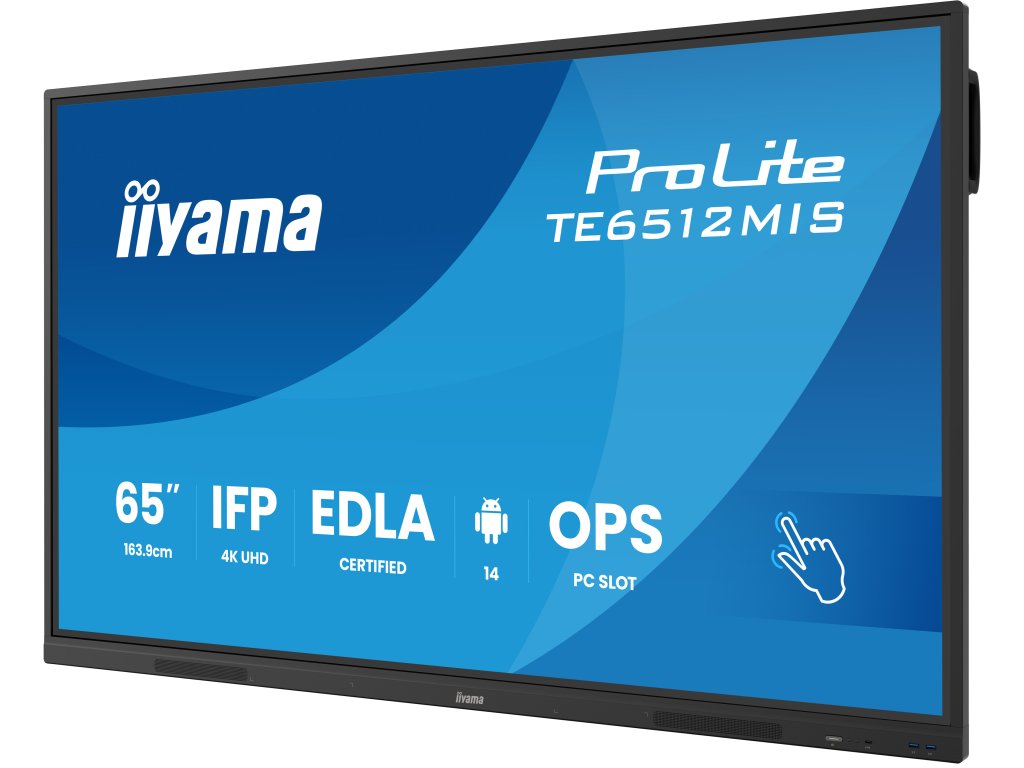 ProLite TE6512MIS-B4AG Typ obrazovky: ,VA DLED Úhlopříčka [palce]: ,65 Rozlišení: ,3840 x 2160 Rozteč bodů ,[palce]: 0.372 Dotyková obrazovka: Ano Obnovovací frekvence [Hz]: ,60 Poměr stran: ,16:9 Povrch displeje: ,antireflexní Jas [cd/m2]: ,400 Kontrast: ,5000:1 Odezva [ms]: ,6.5 Pozorovací úhly (Horizontál/Vertikál): ,178/178 Počet barev: ,1.07B Reproduktory: ,2x 16W ROZHRANÍ/KONEKTORY/OVLÁDÁNÍ: , Analogové vstupní porty: VGA x1 (max. 1920x1080 @60Hz) Digitální vstupní porty: HDMI x2 (2.0, max. 3840x2160 @60Hz, YUV444 (HDMI x1 compatible ARC/ CEC) DisplayPort x1 (max. 3840x2160 @60Hz) USB-C x2 (3.2 (Gen 1, 5Gbit), 3840x2160 @60Hz - RGB444 - (Touch, 1x Front 65W PD, 1x Back 15W PD) Audio input: Mini jack x1 Řídíci vstup monitoru: RS-232c x1 (DSUB 9pin) RJ45 (LAN) x1 (LAN Control) IR x1 Digitální výstupní porty: HDMI x1 Audio Out: S/PDIF (Optical) x1 Mini jack x1 Reproduktory 2 x 16W (Přední) Řidící výstup monitoru: OPS Slot x1 HDCP: HDMI 1: 2.1, USB-C: 2.2 USB ports: x5 (media playback / peripherals / storage – front side: 2x USB 3.2 (Gen 1, 5Gbit), 1x USB-C 3.2 (Gen 1, 5Gbit, 65W PD), side: 2x USB 3.2 (Gen 1, 5Gbit), back: 1x USB-C 2.0 (Gen 1, 5Gbit, 15W PD)) RJ45 (LAN): x2 (Auto switch for PC &, Android, 1000MB) Integrovaný Software: ,iiWare 13E (Android 14 OS) Wi-Fi: ,WiFi 6 - Dual WiFi Bandwidth: 2.4GHz/5GHz, WiFi Standard: IIEEE 802.11 a/b/g/n/ac/ax Bluetooth: , ,2.1+EDR/ 3.0/ 4.x/ 5.0 Napájení: ,Interní Spotřeba [W]: ,129 Stand By režim [W]: ,0.5 , Třída energetické náročnosti: ,G Montáž na zeď: ,600 x 400 Naklápění monitoru: ,Ne Barva: ,Černá Rozměry (ŠxVxH mm): ,1488 x 897 x 98mm Hmotnost [kg]: ,28.5 Obsah balení: , *Kabely: Napájecí, HDMI, USB *4x Touch pen *Příručky: ,uživatelský manuál, instrukce bezpečnosti *Ostatní: ,Montážní držák pro NUC, Montážní držák pro webovou kameru *Dálkové ovládaní: ano ( včetně baterie) Záruka: ,5 Let Stránky výrobce: ,https://iiyama.com/cz_cs/produkty/prolite-te6512mis-b4ag/