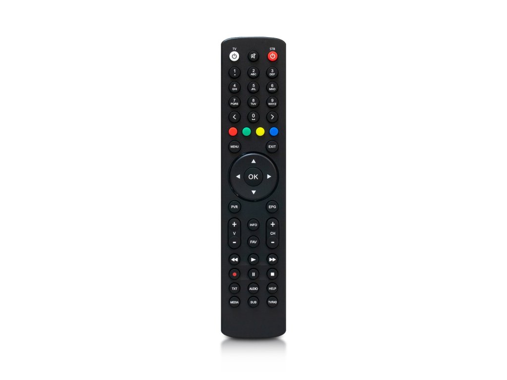 Programovateľné diaľkové ovládanie pre prijímače: AB CryptoBox rady 8XX/7XX/6XX/5XX/4XX AB TereBox 2T PULSe 4K a PULSe 4K MINI S týmto ovládaním môžete okrem prijímača zapnúť aj televízor a ovládať hlasitosť na Vašej TV. Intuitívne rozmiestnenie tlačidiel v ergonomickom slim dizajne a s matnou povrchovou úpravou pre elimináciu odtlačkov prstov. Segmentačné rozdelenie tlačidlových skupín. Farebné tlačidlá sú umiestnené v blízkosti tlačidla OK a smerových tlačidiel. Optimálnejšie rozdelenie tlačidiel pre orientáciu po hmate. Tlačidlá OK, smerové tlačidlá, MENU, EXIT, PVR, EPG sú rozmiestnené rovnako ako pri pôvodných verziách ovládačov značky AB CryptoBox a PULSe.