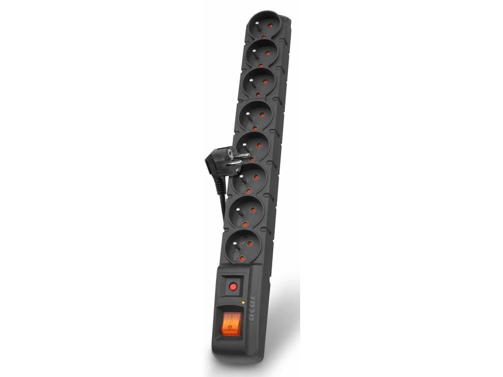 Acar S8 3m kabel, 8 zásuvek, přepěťová ochrana, černá ppacars8-3black PremiumCord