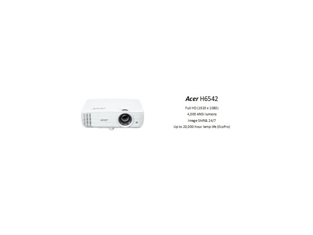Acer H6542 DLP/FullHD 1920x1080 /4000 ANSI lm/13 000:1/ 2xHDMI /repro 1x3W/2,4 Kg MR.JXA11.001