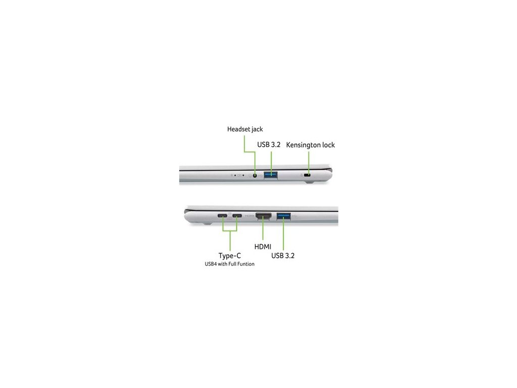 Aspire Go 16 (AG16-71P-513Y) - Windows 11 Home - Intel® Core™ 5 processor 120U - 8 GB DDR5 Memory + 8 GB DDR5 Memory - 1024GB PCIe NVMe SSD PM4 + N/A - 16" WUXGA 1920x1200 16:10 IPS Anti-Glare 120Hz 300nits - Intel® Graphics - Wifi 6 802.11AX 2x2 MU-MIMO ICPS + BT 5.0 - FHD USB TNR Camera with 2Mic. with camera shutter - Backlight KB - 2x USB Type-C™ port supporting: USB 3.2 Gen 2 (up to 10 Gbps) / DisplayPort over USB-C / USB charging 5 V; 3 A / DC-in port 20 V; 65 W - 2x USB 3.2 Gen1 - HDMI 2.1 - Acer Sense App - Copilot Key - 53Wh Li-ion battery - 65W USB Type-C AC Adapter PCR50% TCO9.0 - Pure silver