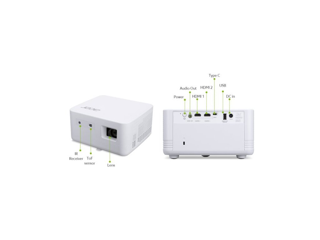 PD1510ic, LED, FHD (1920x1080), WiFi, 1500 ANSI, 5000:1,2x HDMI, USB-C 3.1, repro 1x5W, 2.3Kg, LumiSense, Acer Blue Light Shield, ColorSafe II, životnost lampy 20 000h, 360st projekce, nízká hlučnost 26db, wireless dongle