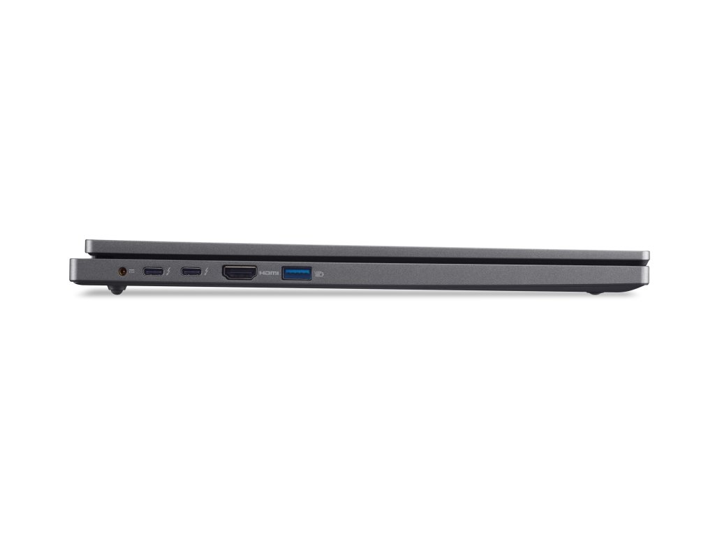 Acer TravelMate P2 16 (TMP216-51-G2-TCO-32DT) * certifikace TCO 9.0 * armádní standard MIL-STD 810H * Acer Dust Defender * TravelMate Sense Operační systém: Windows® 11 Professional 64-bit Procesor: Intel Core 3 100U (6 jader - 2P + 4E, 8 vláken, P-core 1,2/4,7 GHz, E-core 0,9/3,3 GHz, 10 MB cache) Paměť: 16GB DDR5 Maximální velikost: 64GB DDR5 Pevný disk: 512GB PCIe NVMe SSD PM4 Optická mechanika: ne Čtečka paměťových karet: microSD Displej: 16'' WUXGA (1920x1200) 16:10 antireflexní IPS Grafická karta: Integrovaná Intel UHD Graphics 64EU Audio: 2x reproduktor, 2x mikrofon Web kamera: FHD IR USB TNR Polohovací zařízení: OceanGlass Precision Touchpad Podsvícená klávesnice: ano Numerická klávesnice: ano Čtečka čipových karet: ano Čtečka otisků prstů: ano Síť: Gigabit Ethernet Bezdrátová komunikace: WLAN + Bluetooth (WIFI 6E Intel 802.11ax 2x2 CNVi + BT 5.2) Porty USB: * 2x USB 3.2 Gen1 * 2x USB4® 40Gb/s (DisplayPort přes USB-C/USB nabíjení 5V,3A/DC-in port 20V,65W s podporou napájení) Další porty: * 1x HDMI 2.0 * 1x RJ-45 * 1x čtečka microSD karet * 1x čtečka čipových karet * 1x kombinovaný konektor pro sluchátka/mikrofon (3,5mm) * 1x bezpečnostní slot Kensington TPM 2.0: ano Baterie: 53Wh Li-Ion Napájení: 65W USB-C AC adaptér Barva: Steel Gray Rozměry: 359,3x261,1x22,95mm Hmotnost: 1,74kg Záruka: 2 roky