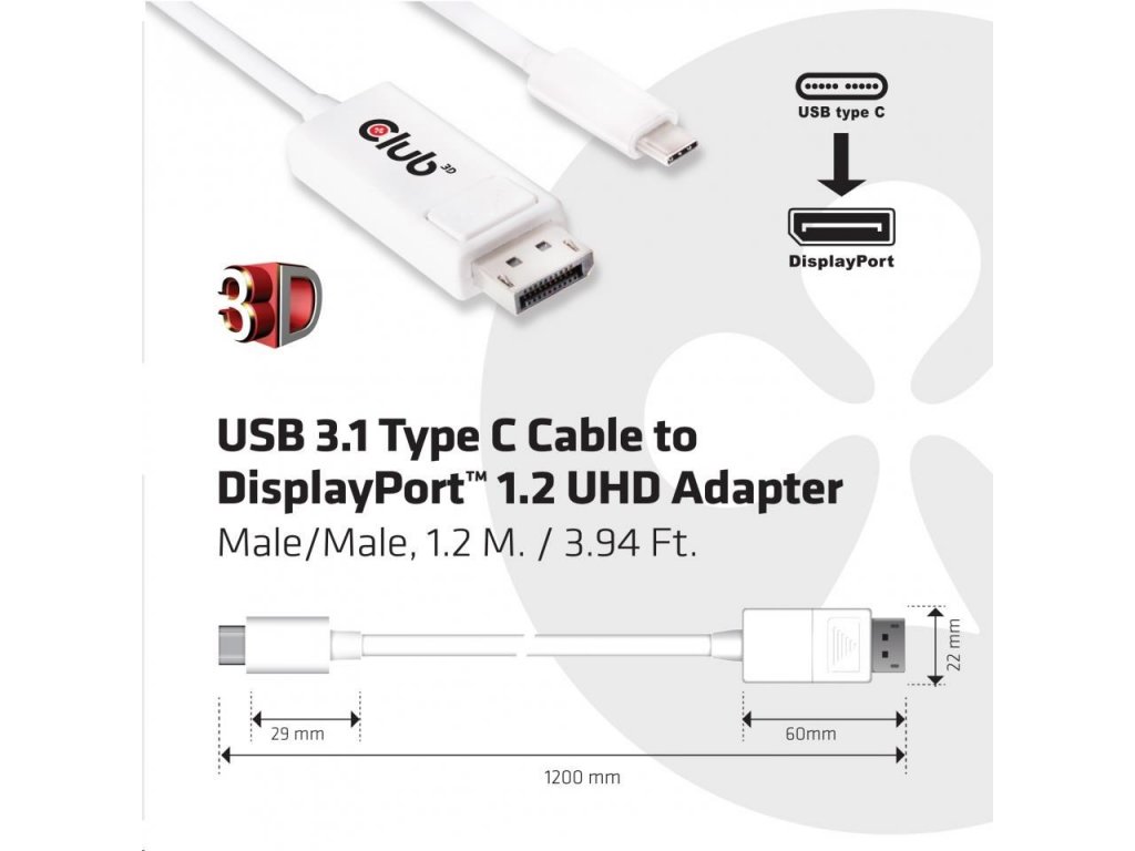 Adaptér Club3D USB 3.1 Typ C na DisplayPort 1.2 4K60Hz UHD 1,2 m (M/M) CAC-1517 Club 3D