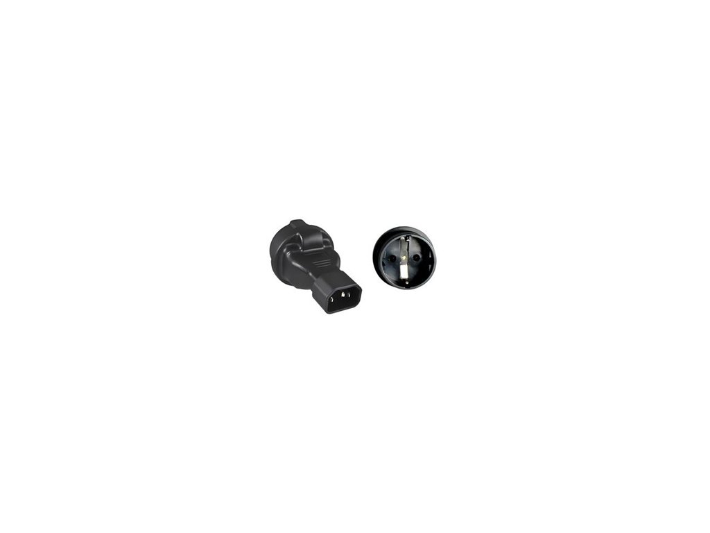 - Napájecí adaptér IEC320 C14 na SCHUKO (F) umožňuje připojit zařízení se zástrčkou typu SCHUKO k napájecím zásuvkám IEC320 C14 například do UPS nebo do napájecích lišt a panelů.
