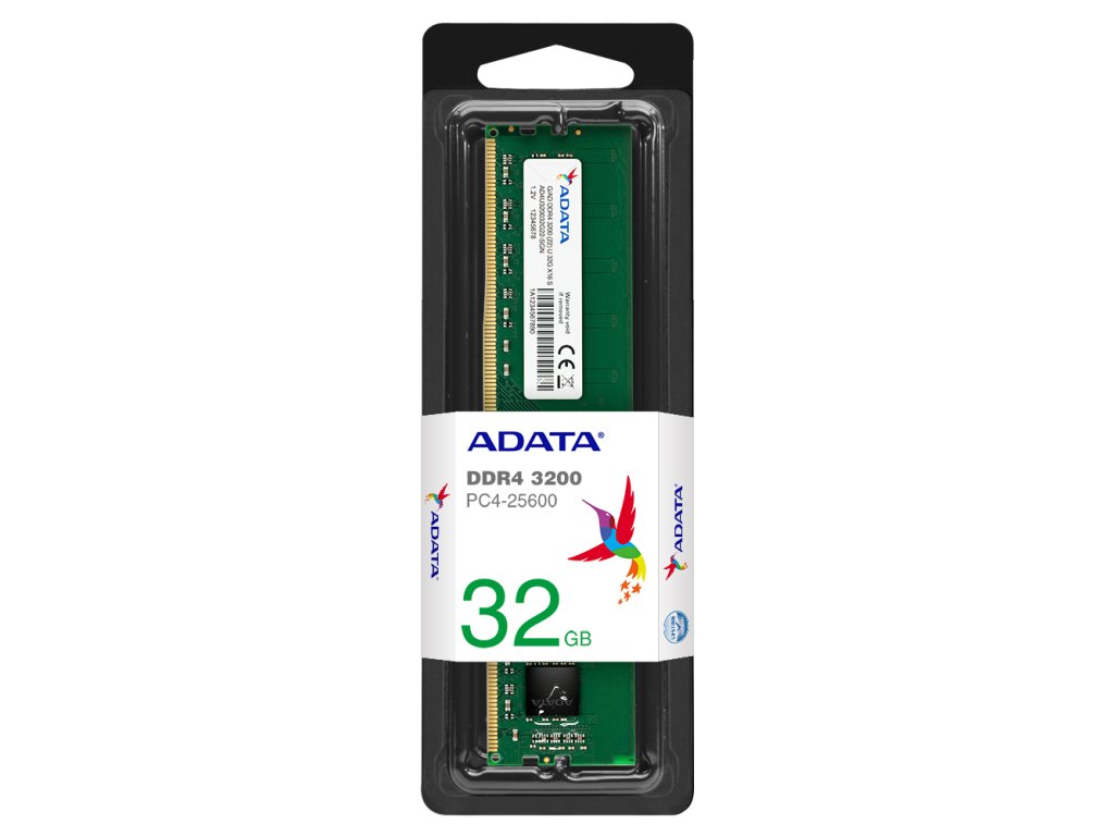 Adata DDR4 3200 U-DIMM - paměťový modul Typ paměti: DDR4 Form Factor: U-DIMM Kapacita paměti: 32GB Počet modulů v balení: 1x 32GB Rychlost: 3200MT/s Časování: CL22 Napětí: 1,2V Provozní teplota: 0°C až 85°C