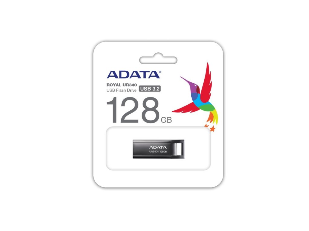 ADATA Flash Disk 128GB UR340, USB 3.2 Dash Drive, kov lesklá černá AROY-UR340-128GBK