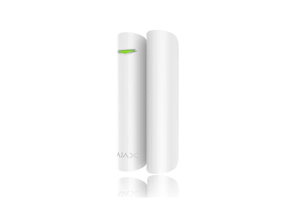 Ajax DoorProtect White - Bezdrôtový magnetický detektor otvorenia v bielom prevedení; detekčná vzdialenosť 1 až 2 cm; 1x vstup pre pripojenie drôtového NC detektora; sabotážny kontakt Tamper; obojsmerná šifrovaná komunikácia, komunikačný protokol Jeweller 868.0-868.6 MHz, výkon signálu 20 mW, dosah signálu až 1 200 m (otvorený priestor); stupeň zabezpečenia 2, trieda prostredia II podľa ČSN EN 50131; napájenie batérií CR123A 3V DC, výdrž batérie až 7 rokov; prevádzková teplota -10°C až +40°C, prevádzková vlhkosť < 75%; vnútorné použitie; povrchová montáž; rozmery 20 x 90 mm; hmotnosť 29 g; farba biela