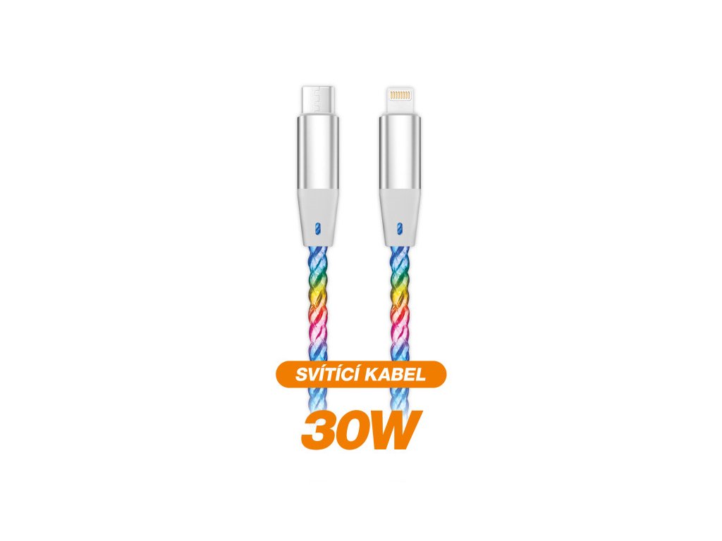 Duhově svítící LED kabel řady ALIGATOR POWER s kovovými konektory USB-C/Lightning nejvyšší kvality, o výkonu 30W a možností nabíjení až 3A. Nudí Vás fádní kabel a přitom je pro Vás výkon na prvním místě? Pak je tento duhově svítící LED kabel tím pravým parťákem! Světelný efekt zajišťuje důkladně zabudovaná LED technologie, která ihned po připojení začne měnit barvy v RGB modelu a poskytuje tak nevšední podívanou. Samozřejmostí je podpora protokolu Power Delivery s nabíjecím proudem až 3A s možností extra rychlého nabíjení o výkonu 30W pro iPhone a iPad. Díky promyšlené délce 1,2m si snadno a pohodlně nabijete Váš mobilní telefon, tablet a další zařízení. Kabel je vyroben z odolného a ohebného materiálu s měděným opletením, které protkávají optická vlákna. Celou prestiž tohoto nabíjecího kabelu uzavírají vysoce kvalitní kovové konektory. Vše je zpracováno precizně a stylově. Celá řada duhově svítících LED kabelů je navržena pro denní použití doma, v kanceláři i na cestách. Máte automobil s USB-C slotem? Celá naše řada ALIGATOR POWER Vám vyřeší propojení téměř všech mobilních zařízení s automobilem a zajistí zpětnou kompatibilitu zrcadlení navigace s vysokou přenosovou rychlostí. Datový a nabíjecí USB-C /Lightning kabel: LED technologie Kabel po připojení ihned svítí a mění barvy Duhové barvy RGB Ultra rychlé nabíjení: 3A Power Delivery až 30W Kompatibilní s iPhone s konektorem Lightning Kompatibilní s iPadem s konektorem Lightning Kompatibilní se zařízeními s konektorem Lightning Vysoká rychlost přenosu dat Vysoce kvalitní kovové konektory Precizní zpracování měděného opletení Flexibilní a odolný Délka: 1,2m
