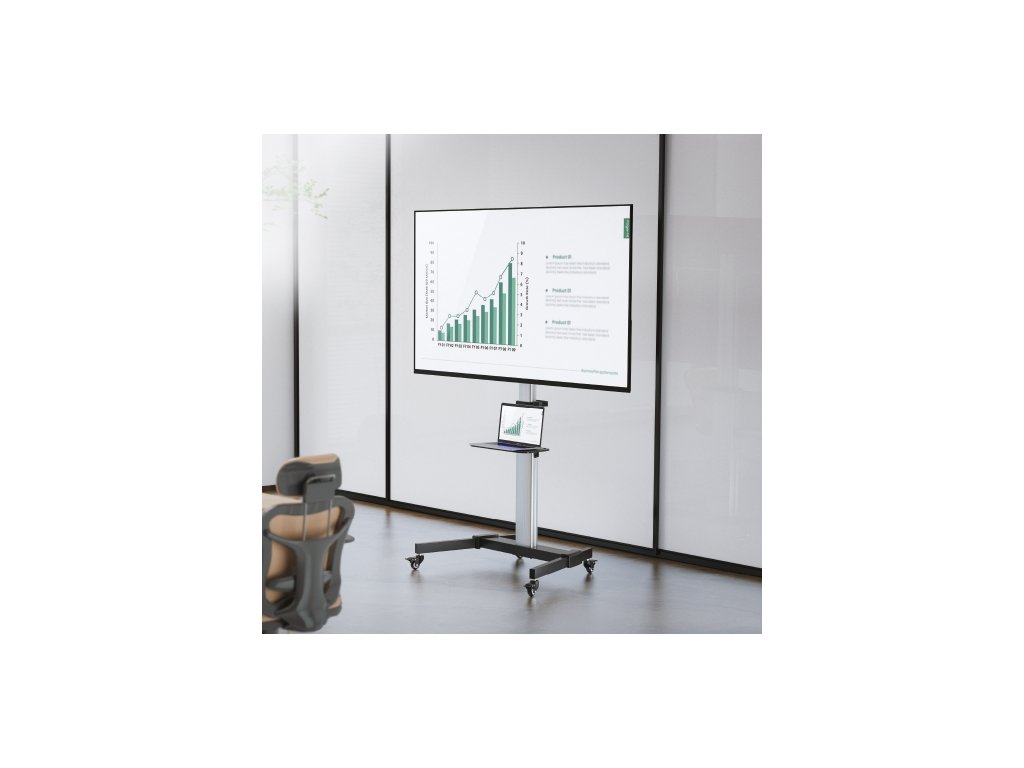 Praktický pojízdný stojan Brateck FS44-46TW je určen pro instalaci TV s plochou obrazovkou s úhlopříčkami od 37“ do 86“ a hmotností až 50 kg. Stojan poskytuje stabilní podporu a díky integrovaným kolečkům s možností aretace zároveň umožňuje snadné a bezpečné přemístění dle potřeby. Elegantní konstrukce z kvalitního hliníku je velmi lehká a zároveň odolná a zaručuje tak spolehlivost a dlouhou životnost stojanu. Stojan je navržen tak, aby byl kompatibilní s širokou škálou televizorů a je tedy ideální volbou pro domácí zábavu, kancelářské prezentace nebo školní učebny. Hlavní vlastnosti: • Elegantní lehká hliníková konstrukce • Jednoduchá změna nastavení orientace TV na výšku nebo na šířku • Jednoduché vertikální nastavení výšky TV • Výškově nastavitelná police s nosností až 5 kg poskytuje dostatek úložného prostoru pro příslušenství • Jednoduchá změna náklonu TV v rozsahu +5°~-10° bez použití nástrojů • 4 kolečka s možností aretace umožňují snadné a bezpečné přemístění stojanu dle potřeby • Integrovaná D rukojeť pro rychlý a snadný přesun stojanu • Vnitřní vedení kabelů rámem stojanu pro jejich snadnou organizaci a uspořádání • Podporované rozteče VESA: 200x200,300x200,400x200,300x300,400x300,400x400,600x400 • Jednoduchá a rychlá montáž Parametry: • Určeno pro zařízení: TV • Způsob montáže: samostatně stojící • Počet TV: 1 • Rozsah výškového nastavení: 1200-1600 mm • Maximální náklon (nahoru, dolů): +5°~-10° • Maximální vychýlení (vpravo, vlevo): 0° • Maximální otáčení TV: 360° • Maximální hmotnost TV: 50 kg • Minimální rozměr TV: 37'' • Maximální rozměr TV: 86'' • USB připojení: ne • Barva: ALU / černá mat • Rozměry (Š x V x H): 846mm x 610mm x 1420-1820mm • Hmotnost: 14.9 kg