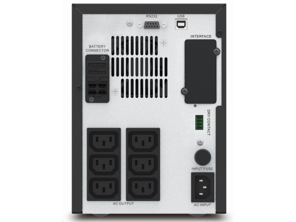 Počet zásuviek:6; Účel použitia:Server, Desktop; Prevedenie:Tower; VA:1500; Topológia:Line-interaktívne; Fáza (Vstup/Výstup):1:1; Komunikácia:USB, RS-232; Možnosti rozšírenia:Management karta, RELAY Output