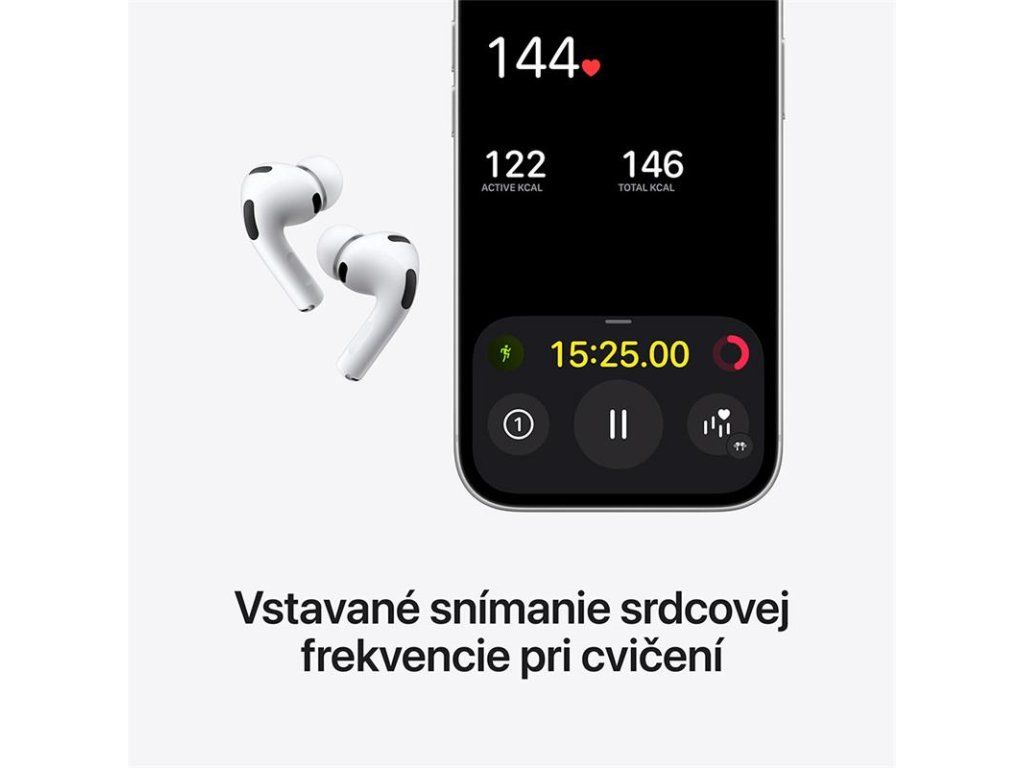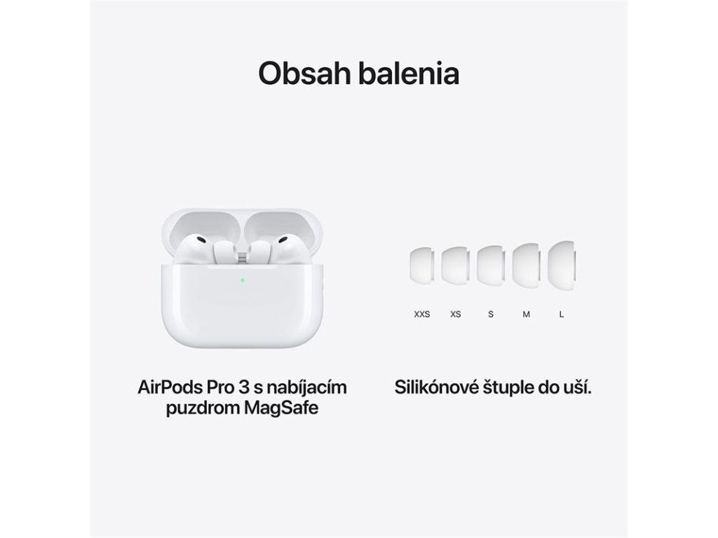 AirPods Pro 3. Až dvakrát lepšie aktívne potláčanie hluku než AirPods Pro 2. Teraz so snímaním srdcovej frekvencie, dlhšou výdržou batérie a pokročilými funkciami na ochranu zdravia sluchu. A s novým dizajnom, ktorý lepšie sedí..