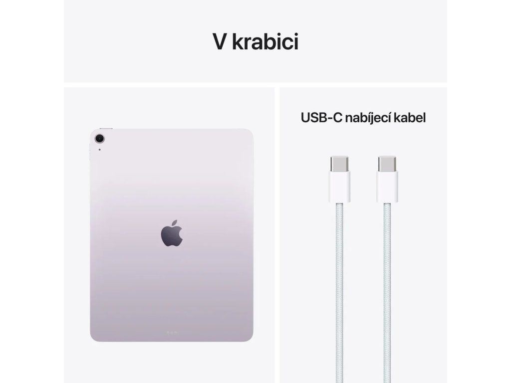 Apple iPad Air 13'' (M4) Wi-Fi 128GB *Apple Intelligence Operační systém: iPadOS 26 Procesor: Apple M4, 8 jádrové CPU (3P+5E), 9 jádrové GPU, 16 jádrový Neural Engine Paměť: 12GB Pevný disk: 128GB Čtečka paměťových karet: ne Displej: 12,9'' Liquid Retina Multi-Touch displej s LED podsvícením a technologií IPS, 2732x2048 při 264ppi, 600 nitů, antireflexní, oleofobní úprava proti šmouhám, True Tone Audio: stereo reproduktory v orientaci na šířku, FaceTime audio, 2x mikrofon Zadní fotoaparát: *12MP širokoúhlý, f/1,8, pětičlenný objektiv, až 5× digitální zoom, Smart HDR 4, sekvenční režim, HEIF a JPEG *4K video při 24 fps, 25 fps, 30 fps nebo 60 fps, kontinuální autofokus při nahrávání videa, HEVC a H.264, časosběrné video se stabilizací Přední webkamera: *12MP Center Stage na šířku, f/2,0, Smart HDR 4 *1080p HD video při 25 fps, 30 fps nebo 60 fps, Retina Flash s True Tone, sekvenční režim, FaceTime Senzory: *Touch ID *tříosý gyroskop *akcelerometr *barometr *snímač okolního osvětlení Určování polohy: *digitální kompas *Wi-Fi *mikrolokalizace iBeacon Bezdrátová komunikace: Wi-Fi 7 (802.11be) s technologií 2×2 MIMO + Bluetooth 6 Porty: *1x USB-C (až 10 Gb/s), nabíjení, DisplayPort *1x magnetický konektor *1x smart konektor Baterie: vestavěná lithium-polymerová baterie s kapacitou 36,59Wh Výdrž baterie: až 10 hodin Barva: fialová Rozměry: 280,6x214,9x6,1mm Hmotnost: 616g V krabici: *iPad Air *USB-C nabíjecí kabel (1m)
