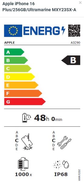 Apple iPhone 16 Plus 256GB ultramarínový * FaceTime * video/audiohovory * prostorový zvuk * VoLTE * tísňové SOS volání * detekce autonehody Operační systém: iOS 18 Procesor: čip A18 (6jádrové CPU se 2 výkonnostními a 4 úspornými jádry, 5jádrové GPU, 16jádrový Neural Engine) Kapacita úložiště: 256GB Konstrukce: * hliník * Ceramic Shield nejnovější generace na přední straně * zadní strana z probarveného skla Displej: 6,7” Super Retina XDR (OLED, 2796×1290 při 460 ppi) * Dynamic Island * HDR * True Tone * široký barevný rozsah (P3) * Haptic Touch * kontrastní poměr (typický) 2000000:1 * maximální jas (typický) 1000 nitů, špičkový jas (HDR) 1600 nitů, špičkový jas (venku) 2000 nitů, minimální jas 1 nit * oleofobní úprava proti šmouhám * podpora současného zobrazení více jazyků a znaků Stupeň krytí: IP68 (až 30 minut v hloubce do 6 metrů) Fotoaparát: zadní * 48MP Fusion fotoaparát: 26 mm, clona f/1,6, optická stabilizace obrazu s posuvem snímače, 100% Focus Pixels, fotky v supervysokém rozlišení (24MP a 48MP) * podpora 12MP 2× přiblížení: 52 mm, clona f/1,6, optická stabilizace obrazu s posuvem snímače, 100% Focus Pixels * 12MP ultraširokoúhlý fotoaparát: 13 mm, clona f/2,2, 120° zorné pole, 100% Focus Pixels * 2× přiblížení optickým zoomem, 2× oddálení optickým zoomem, 4× rozsah optického zoomu * až 10× digitální zoom * True Tone blesk * 4K video v Dolby Vision při 24 fps, 25 fps, 30 fps nebo 60 fps * formáty ukládání fotek: HEIF a JPEG * formáty ukládání videa: HEVC a H.264 přední * TrueDepth na rozpoznávání obličeje * 12MP fotoaparát * clona f/1,9 * automatické zaostřování technologií Focus Pixels * 4K video v Dolby Vision při 24 fps, 25 fps, 30 fps nebo 60 fps Senzory: * Face ID * barometr * gyroskop s vysokým dynamickým rozsahem * akcelerometr snímající vysoké přetížení * snímač blízkosti * dva snímače okolního osvětlení Mobilní a bezdrátová rozhraní: * 5G (pásma sub-6 GHz) s technologií MIMO 4×4 * gigabitové LTE s technologiemi MIMO 4×4 a LAA * Wi-Fi 7 (802.11be) s technologií MIMO 2×2 * Bluetooth 5.3 * ultraširokopásmový čip druhé generace * technologie sítí Thread * NFC s režimem čtečky * expresní karty s energetickou rezervou SIM karta: * dvě SIM (nano-SIM a eSIM) * podpora dvou eSIM Určování polohy: * GPS, GLONASS, Galileo, QZSS a BeiDou * digitální kompas * Wi-Fi * mobilní síť * mikrolokalizace iBeacon Konektivita: * USB-C konektor s podporou pro: nabíjení, DisplayPort, USB 2 (až 480 Mb/s) * Akční tlačítko: tichý režim, soustředění, fotoaparát, svítilna, diktafon, rozpoznat hudbu, přeložit, lupa, ovládání, zkratka nebo zpřístupnění * Ovládání fotoaparátu: expozice, hloubka ostrosti, přiblížení, fotoaparáty, styly, tón Baterie: vestavěná dobíjecí lithium-iontová * bezdrátové nabíjení MagSafe příkonem až 25 W při použití 30W adaptéru nebo silnějšího * bezdrátové nabíjení Qi2 příkonem až 15 W * bezdrátové nabíjení Qi příkonem až 7,5 W Rozměry: 160,9x77,8x7,8mm Hmotnost: 199 g Obsah balení: * iPhone 16 Plus * USB-C nabíjecí kabel (1m) * dokumentace