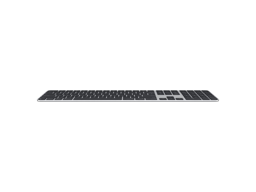 Magic Keyboard s Touch ID a číselnou klávesnicí pro Macy s čipem Apple – slovenský – černé klávesy Magic Keyboard je k dispozici i s Touch ID na rychlé, snadné a bezpečné ověřování uživatele při přihlašování a nakupování. Na Magic Keyboardu s Touch ID a číselnou klávesnicí se píše mimořádně pohodlně a přesně. Klávesnice má rozšířené rozvržení s klávesami na rychlou navigaci v dokumentech a velkými klávesami se šipkami, které přijdou obzvlášť vhod při hraní her. Číselné klávesy usnadňují práci v tabulkových procesorech a ve finančních aplikacích. Klávesnice je bezdrátová a má dobíjecí baterii, která ji na jedno nabití udrží v chodu déle než měsíc. S Macem se spáruje automaticky, takže se můžeš rovnou dát do práce. Má port USB-C a je k němu přibalený opletený USB-C nabíjecí kabel na spárování a nabíjení z USB-C portu Macu. Technické specifikace: Rozměry a hmotnost *Výška: 0,41–1,09 cm *Šířka: 41,87 cm *Hloubka: 11,49 cm *Hmotnost: 0,369 kg Obecné *Multimediální klávesy Připojení a rozšíření *Bluetooth *Port USB-C *Bezdrátové připojení V krabici: *Magic Keyboard s Touch ID a číselnou klávesnicí *USB-C nabíjecí kabel