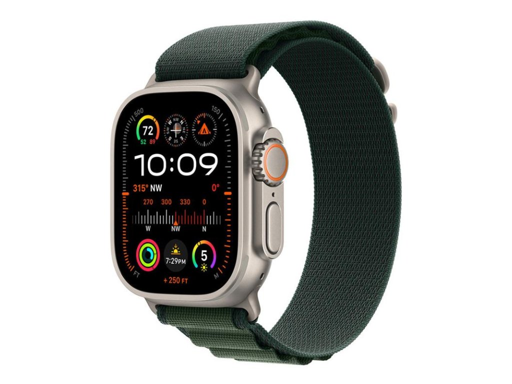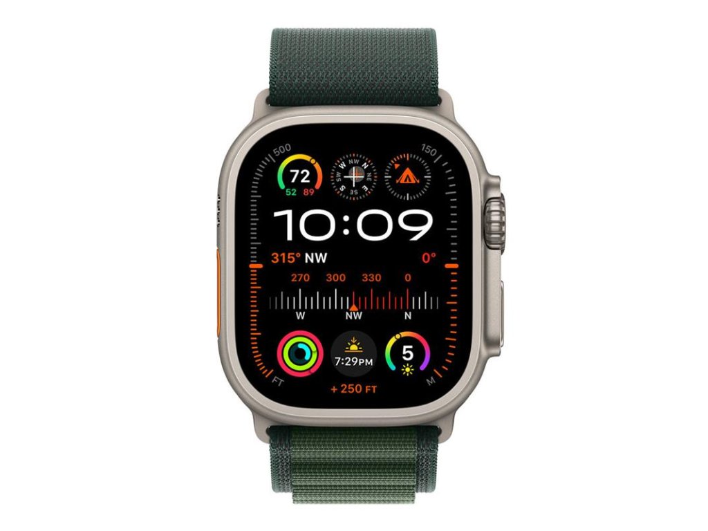 Apple Watch 49mm Dark Green Alpine Loop - Small - Natural Titanium Finish MXMU3ZM-A
