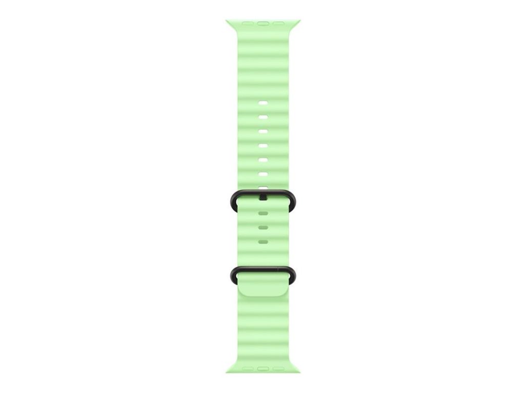 Ocean Band je vytvarovaný z vysoko funkčného elastoméru s trubicovou geometriou, ktorá mu umožňuje natiahnuť sa, aby perfektne sedel, dokonca aj cez neoprénový oblek. Titánová pracka odolná voči korózii a nastaviteľná slučka zaisťujú náramok aj pri vysokorýchlostných vodných športoch.