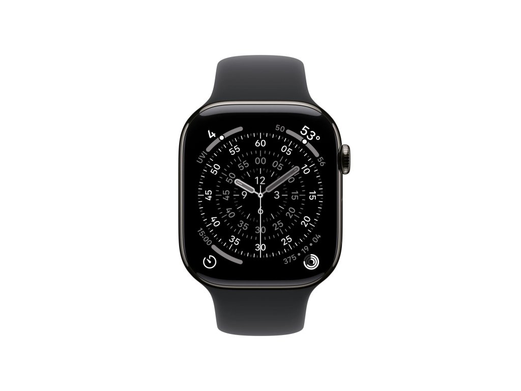 Apple Watch Series 11 Cellular Sport Band břidlicově šedé/černé S/M * pro zápěstí s obvodem 130–200 mm * korunka Digital Crown s haptickou odezvou * reproduktor/mikrofon Operační systém: watchOS Displej: stále zapnutý LTPO3 OLED Retina, 374×446 pixelů, 989mm2, 326 ppi, 1/2000 nitů Čip: * S10 s 64bitovým dvoujádrovým procesorem * 4jádrový Neural Engine * 64 GB Připojení: * GPS L1, GLONASS, Galileo, QZSS a BeiDou * LTE a UMTS * Wi-Fi 4 (802.11n) * podpora 2,4GHz a 5GHz Wi-Fi sítí * Bluetooth 5.3 * NFC: Apple Pay, GymKit Snímače: * elektrický snímač srdeční činnosti * třetí generace optického snímače srdeční činnosti * saturace kyslíkem * teploty * hloubkoměr do 6 m * teploty vody * kompas * stále aktivní výškoměr * akcelerometr snímající vysoké přetížení * gyroskop s vysokým dynamickým rozsahem * okolního osvětlení Voděodolnost: do 50 m (pro plavání) Odolnost proti prachu: IP6X Funkce: * aplikace Saturace kyslíkem * aplikace EKG * aplikace Sledování cyklu se zpětným odhadem doby ovulace * aplikace Srdeční tep * oznámení o vysoké a nízké tepové frekvenci * oznámení o nepravidelném srdečním rytmu * aplikace Léky * aplikace Všímavost se zaznamenáváním stavu mysli * aplikace Hluk * aplikace Spánek se sledováním fází spánku * spánkové skóre * upozorňování na spánkovou apnoi * oznámení o hypertenzi * tíseň SOS * mezinárodní tísňové volání * detekce autonehody * detekce pádu * monitorování hluku Kompatibilita: iPhone 11 a novější, včetně iPhonu SE (2. generace a novější) s iOS 26 nebo novějším Napájení: vestavěná dobíjecí lithium-iontová, podpora rychlonabíjení, až 24 hodin běžného používání Materiál pouzdra: titan Rozměry: 42x36x9,7mm Hmotnost: 34,6g Obsah balení: * Apple Watch Series 11 * řemínek * magnetická rychlonabíječka Apple Watch s USB-C kabelem (1m)