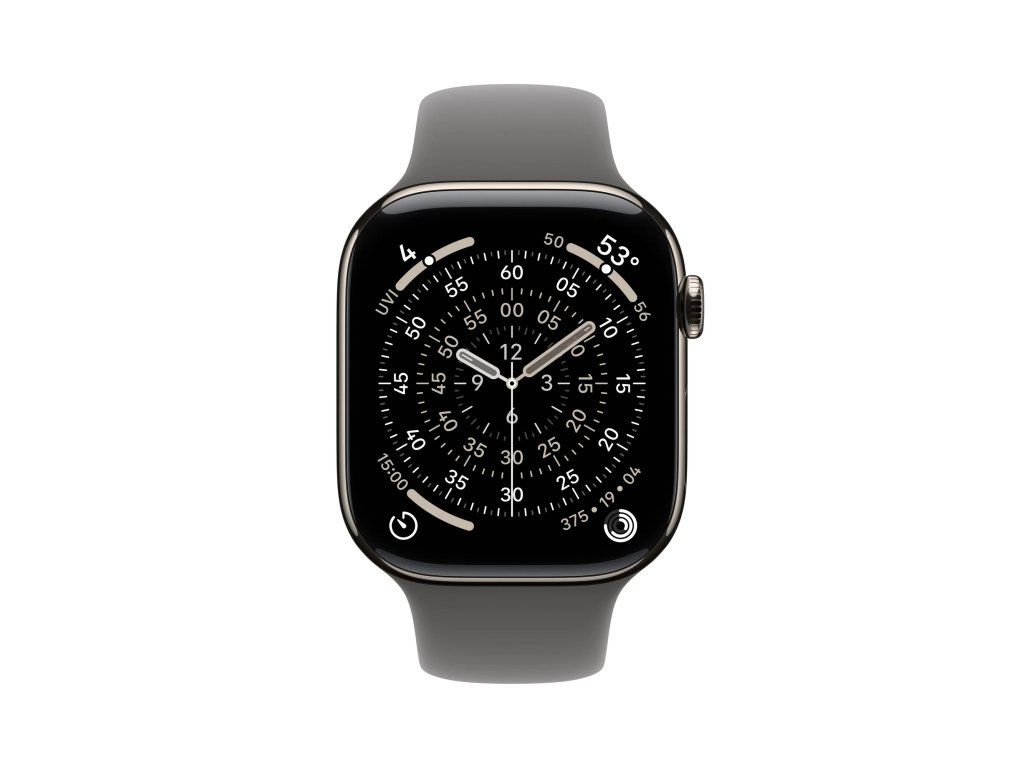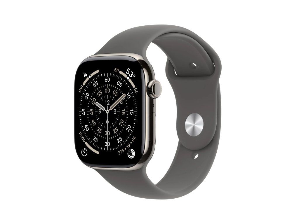 Apple Watch Series 11 Cellular Sport Band přírodní/kamenně šedé S/M * pro zápěstí s obvodem 140–245 mm * korunka Digital Crown s haptickou odezvou * reproduktor/mikrofon Operační systém: watchOS Displej: stále zapnutý LTPO3 OLED Retina, 416×496 pixelů, 1220 mm2, 326 ppi, 1/2000 nitů Čip: * S10 s 64bitovým dvoujádrovým procesorem * 4jádrový Neural Engine * 64 GB Připojení: * GPS L1, GLONASS, Galileo, QZSS a BeiDou * LTE a UMTS * Wi-Fi 4 (802.11n) * podpora 2,4GHz a 5GHz Wi-Fi sítí * Bluetooth 5.3 * NFC: Apple Pay, GymKit Snímače: * elektrický snímač srdeční činnosti * třetí generace optického snímače srdeční činnosti * saturace kyslíkem * teploty * hloubkoměr do 6 m * teploty vody * kompas * stále aktivní výškoměr * akcelerometr snímající vysoké přetížení * gyroskop s vysokým dynamickým rozsahem * okolního osvětlení Voděodolnost: do 50 m (pro plavání) Odolnost proti prachu: IP6X Funkce: * aplikace Saturace kyslíkem * aplikace EKG * aplikace Sledování cyklu se zpětným odhadem doby ovulace * aplikace Srdeční tep * oznámení o vysoké a nízké tepové frekvenci * oznámení o nepravidelném srdečním rytmu * aplikace Léky * aplikace Všímavost se zaznamenáváním stavu mysli * aplikace Hluk * aplikace Spánek se sledováním fází spánku * spánkové skóre * upozorňování na spánkovou apnoi * oznámení o hypertenzi * tíseň SOS * mezinárodní tísňové volání * detekce autonehody * detekce pádu * monitorování hluku Kompatibilita: iPhone 11 a novější, včetně iPhonu SE (2. generace a novější) s iOS 26 nebo novějším Napájení: vestavěná dobíjecí lithium-iontová, podpora rychlonabíjení, až 24 hodin běžného používání Materiál pouzdra: titan Rozměry: 46x39x9,7mm Hmotnost: 43,1g Obsah balení: * Apple Watch Series 11 * řemínek * magnetická rychlonabíječka Apple Watch s USB-C kabelem (1m)