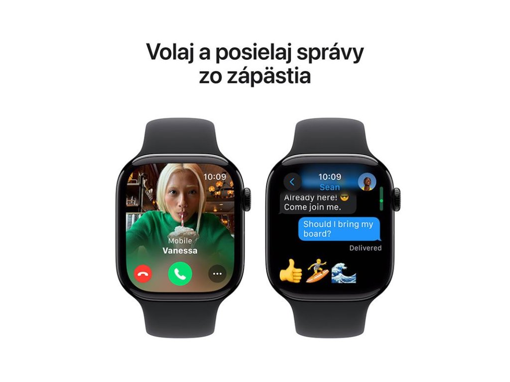 ZOSTAŇTE PRIPOJENÍ - posielajte textové správy, prijímajte hovory, počúvajte hudbu a podcasty, dostávajte upozornenia na cestách. Apple Watch Series 10 (GPS) spolupracujú s vaším iPhone alebo Wi-Fi, aby ste zostali v spojení.