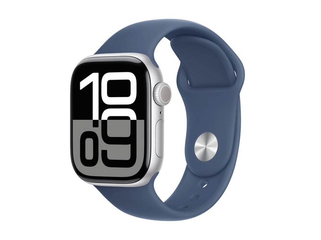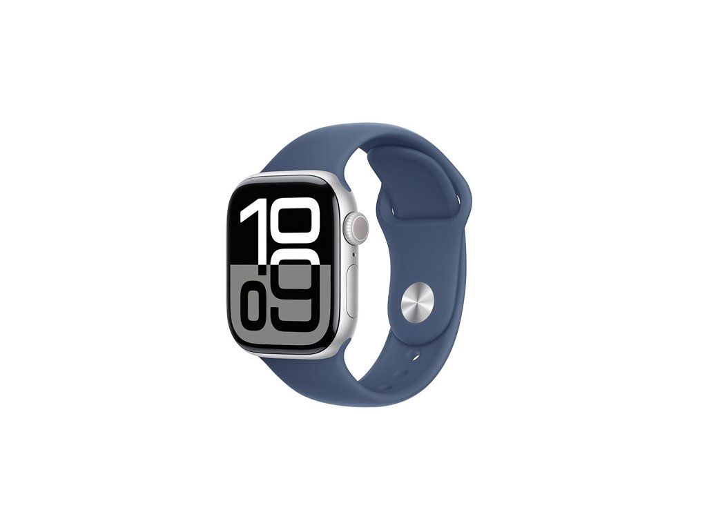 Apple Watch Series 10 GPS + Cellular 42mm Silver Aluminium Case with Denim Sport Band - M/L MWX43QC-A