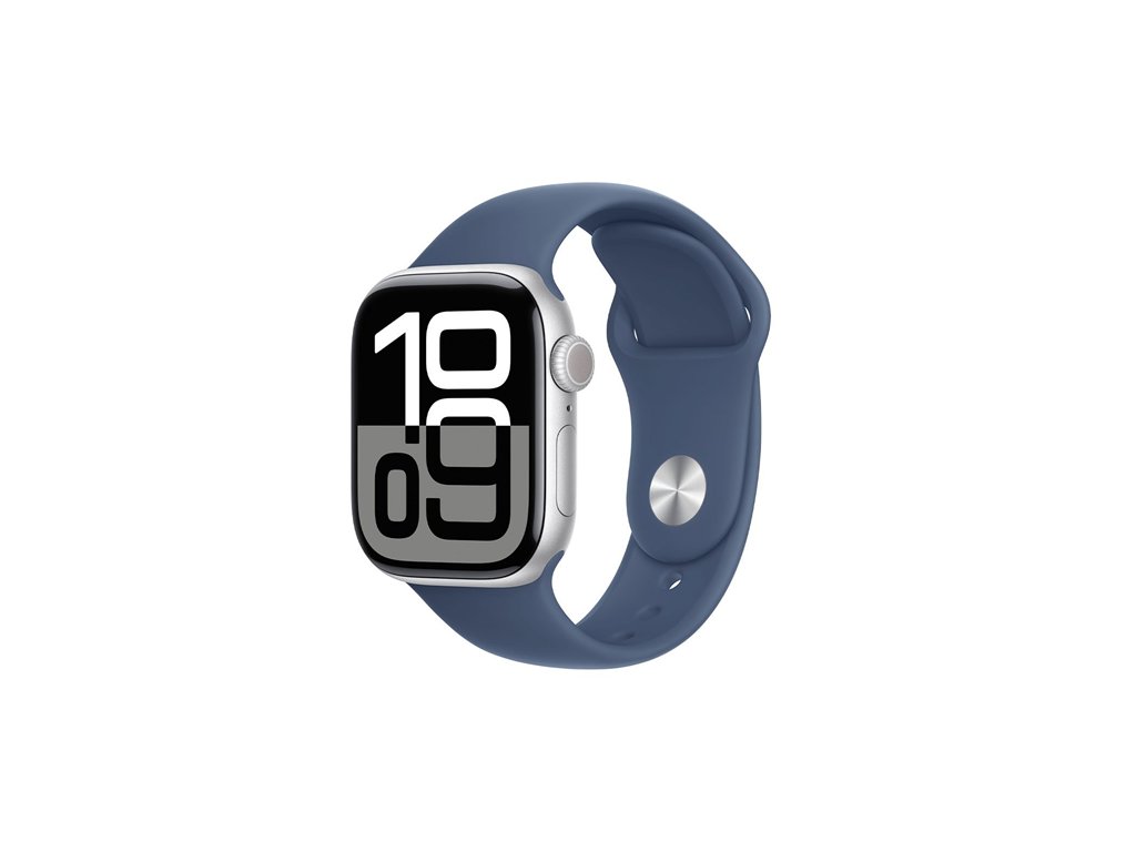 Apple Watch Series 10 GPS + Cellular 46mm Silver Aluminium Case with Denim Sport Band - M/L MWY13QC-A