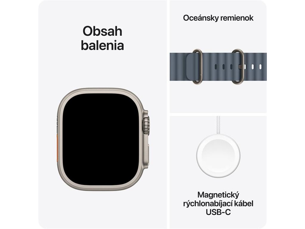 Apple Watch Ultra 3 GPS + Cellular 49mm Prírodný titán s oceľovo modrým oceánskym remienkom MEWH4QC-A