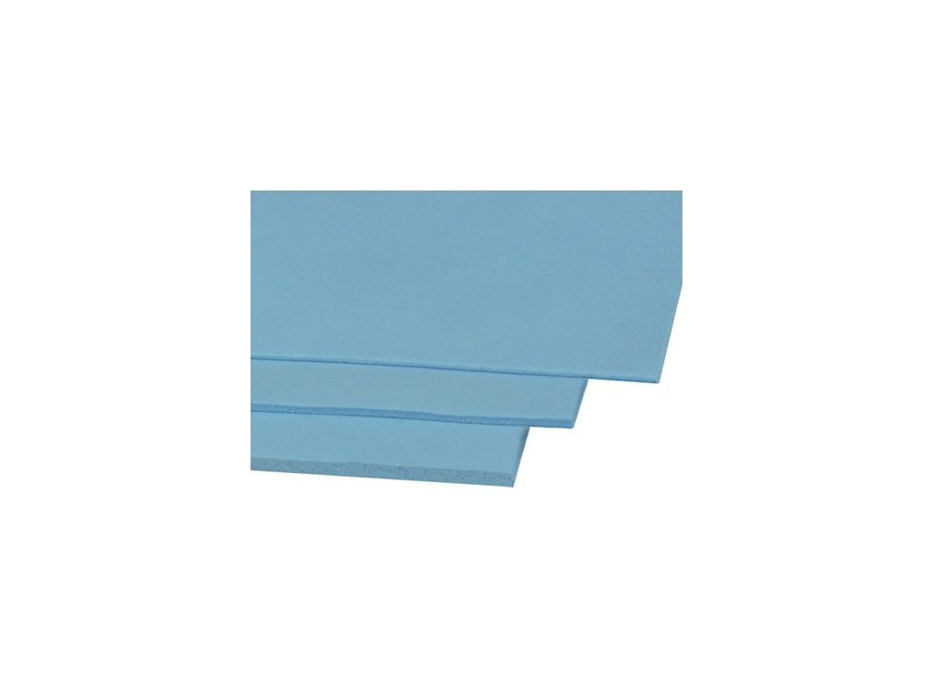 Efektivní tepelná vodivost. Materiál na bázi křemíku použití u této chladící podložky předčí běžné podložky tím, že poskytuje optimální tepelné rozhraní mezi chladičem a elektronickým zařízením. Vyplňování mezer. Vzhledem k velké pružnosti funguje tato tepelná podložka jako dokonalý odstraňovač nedostatků a nerovnoměrností povrchu: Bez jakýchkoliv problémů vyplňuje přesně vzduchové mezery a hrubý povrch. Snadno se nanáší. Instalace chladicí podložka je velmi snadná i pro začátečníky. Bezpečná manipulace. Podložka neobsahuje žádné kovové částice. Rozměry: 290x290 mm Tloušťka: 0,5 mm nebo 1,0 mm nebo 1,5 mm (podle modelu) Tepelná vodivost: 6,0 W / mK Tvrdost: 25 Shore 00 Specifická hmotnost: 3,2 g / cm3 Barva: Modrá Teplota: -40 - 200 °C Odpor: 1 x 1012 Ohm-cm Napětí: 12 kV / mm Pevnost v tahu: 2,5 Kgf / cm2 Prodloužení: 45% Dielektrická konstanta 14,1816? při 60 Hz 13,0264? při 1K Hz 13,0264? při 1M Hz UL Hořlavost V-0