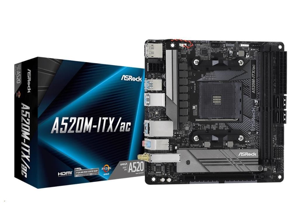 ASRock MB Sc AM4 A520M-ITX/AC, AMD A520, 2xDDR4, HDMI, DP A520M-ITX-AC