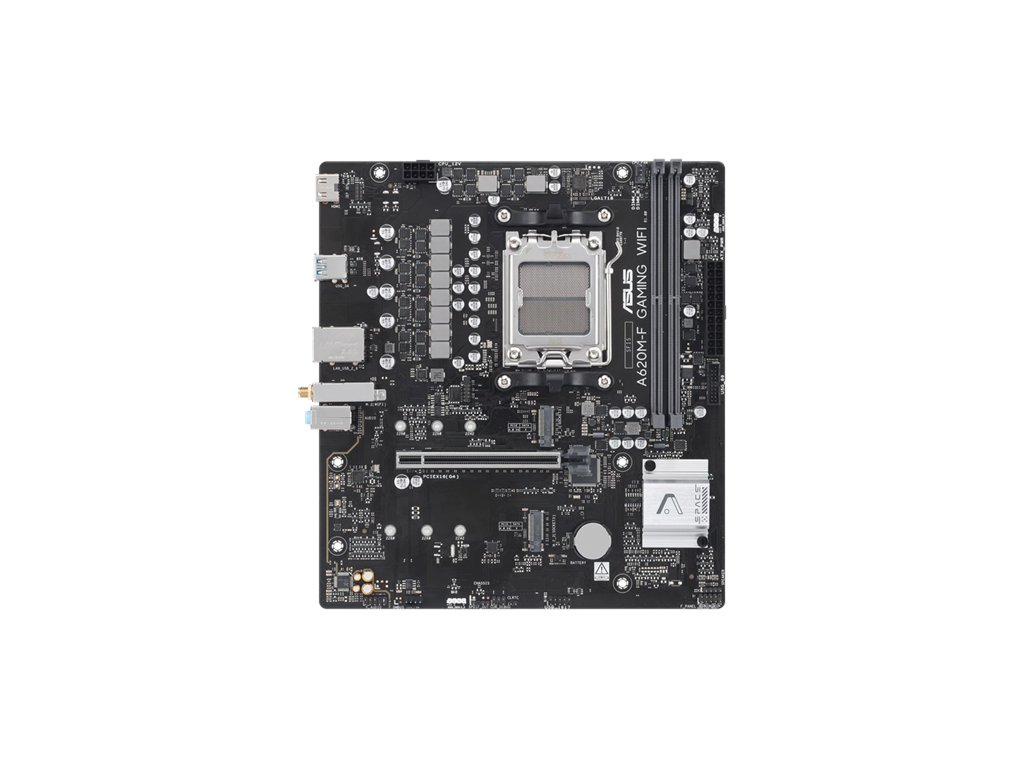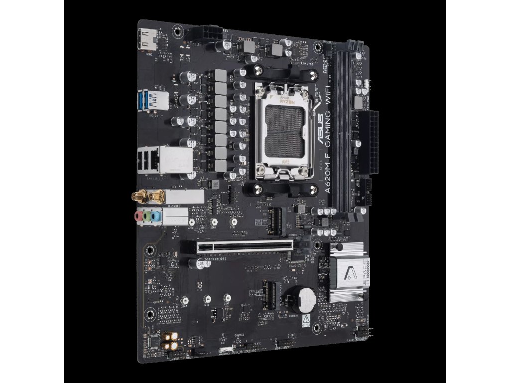 ASUS A620M-F GAMING WIFI CPU: AMD Socket AM5 pro stolní procesory AMD Ryzen™ řady 9000, 8000 a 7000 Podporuje procesory AMD až do 120 W Chipset: AMD A620 Chipset Paměť: 2 x DIMM slots, max. 128GB, DDR5 8000+ Grafické výstupy: 1 x HDMI™ port - Supports 4K@60Hz as specified in HDMI 2.1. Rozšiřující sloty: Stolní procesory AMD Ryzen™ řady 9000, 8000 a 7000 1× slot PCIe 4.0 ×16 Úložiště: 2 x M.2 slot Ethernet: 1 x Realtek RTL8125D 2.5Gb Bezdrátové připojení a Bluetooth: Wi-Fi 6 1x1 Wi-Fi 6 (802.11 a/b/g/n/ac/ax) Supports 2.4/5GHz frequency band Bluetooth® v5.3 USB: Zadní USB (celkem 4 porty) 2× USB 3.2 Gen 1 (5 Gb/s) porty (2× Type-A) 2× USB 2.0 porty (2× Type-A) Přední USB (celkem 4 porty) 1× USB 3.2 Gen 1 (5 Gb/s) konektor pro vyvedení 2 dalších USB 3.2 Gen 1 portů 1× USB 2.0 konektor pro vyvedení 2 dalších USB 2.0 portů Audio: Realtek 7.1 Surround Sound High Definition Audio CODEC Podpora: detekce zapojení konektorů, multi-streaming, přemapování konektorů na předním panelu Podpora přehrávání až ve kvalitě 24 bit / 192 kHz Porty na zadním panelu: 2 x USB 3.2 Gen 1 (5G) ports (2 x Type-A) 2 x USB 2.0 ports (2 x Type-A) 1 x HDMI™ port 1 x Wi-Fi Module 1 x Realtek 2.5Gb Ethernet port 3 x Audio jacks Interní konektory: Fan and Cooling Related 1 x 4-pin CPU Fan header 1 x 4-pin Chassis Fan headers Power Related 1 x 24-pin Main Power connector 1 x 8-pin +12V Power connector Storage Related 2 x M.2 slots (Key M) USB 1 x USB 3.2 Gen 1 (5G) header supports 2 additional USB 3.2 Gen 1 ports 1 x USB 2.0 header supports 2 additional USB 2.0 ports Miscellaneous 2 x Addressable Gen 2 headers 1 x Clear CMOS header 1 x Front Panel Audio header (F_AUDIO) 1 x S/PDIF Out header 1 x Speaker header 1 x 10-1 pin System Panel header BIOS: 256 Mb Flash ROM, UEFI AMI BIOS Velikost: 9.6 inch x 8.7 inch ( 24.4 cm x 22.1 cm ) Odkaz na oficiální web: https://www.asus.com/cz/motherboards-components/motherboards/others/a620m-f-gaming-wifi/