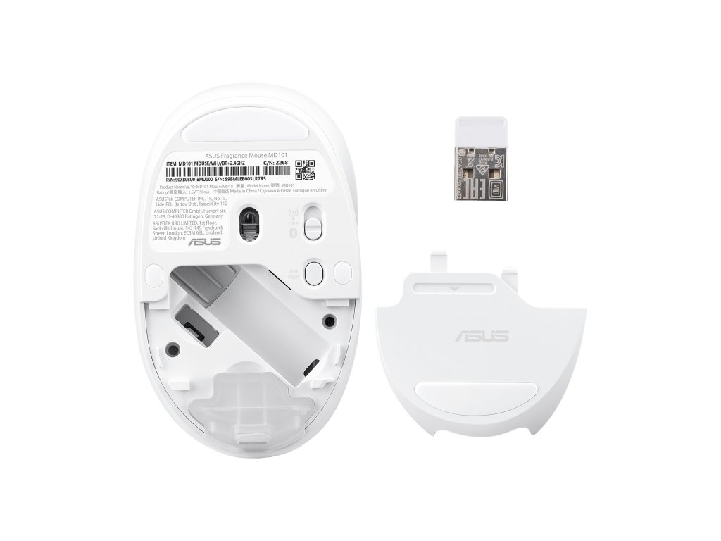 ASUS Fragrance Mouse MD101/Ergonomická/Optická/2 400 DPI/USB+BT/Biela 90XB08U0-BMU000 Asus
