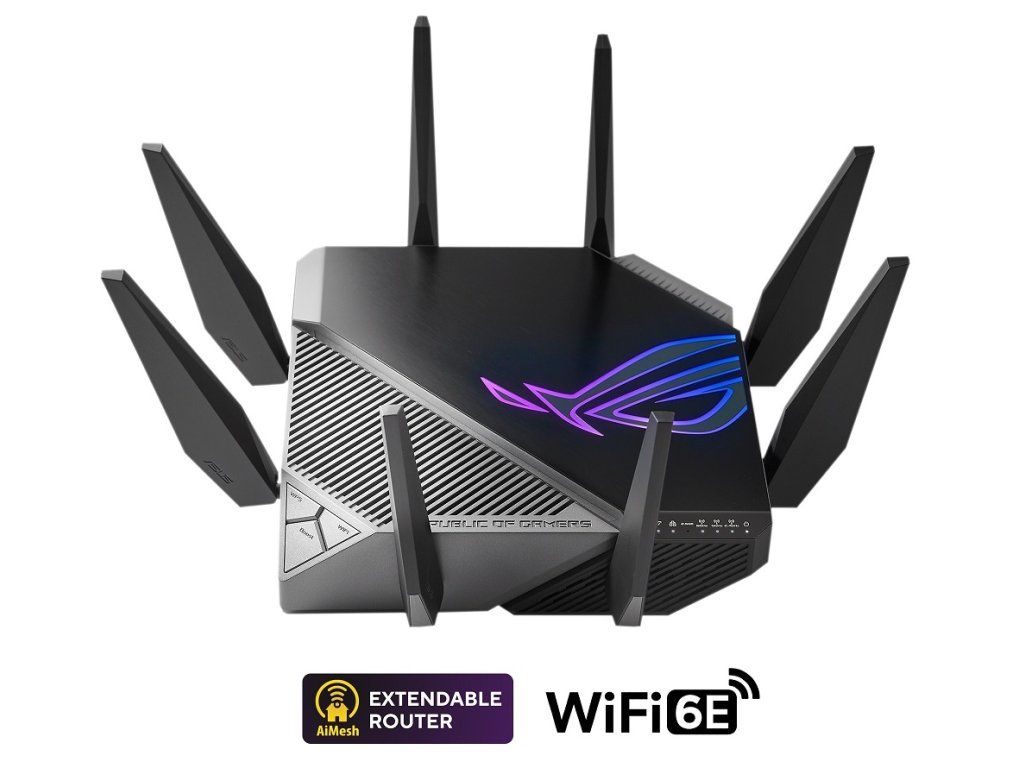 ROG Rapture GT-AXE11000 Třípásmový herní router GT-AXE11000 WiFi 6E (802.11ax), nové pásmo 6 GHz, 2.5G WAN/LAN port, kompatibilní s PS5, agregace WAN, VPN Fusion, tříúrovňová herní akcelerace, zabezpečení sítě zdarma a podpora AiMesh *Standard WiFi nové generace – první třípásmový WiFi 6E router na světě zvyšuje rychlost až 11 000 Mb/s. *Nové pásmo 6 GHz – Širší kanály a vyšší kapacita přinášejí vyšší výkon, nižší latenci a menší rušení. *2.5G WAN/LAN Port – Veškerý síťový provoz procházející přes 2.5G port má nejvyšší prioritu a 2.5G port tak dokáže plně využít potenciál WiFi 6. *Výkon díky dokonalé technice – Čtyřjádrový procesor, pokročilý chladicí systém a optimalizovaný design antény přinášejí výpočetní schopnosti na zcela nové úrovni. *Tříúrovňová herní akcelerace – Zrychlete přenos herních dat na každé zastávce, od vašeho zařízení až po herní server. Model: GT-AXE11000 Síťový standard: *Wi-Fi 6E (802.11ax) *Wi-Fi 6 (802.11ax) *Zpětná kompatibilita s Wi-Fi 802.11a/b/g/n/ac Technologie AX: ano Rychlost dat: *2,4GHz AX: 4x4 (Tx/Rx) 1024 QAM 20/40MHz, až 1148Mb/s *5GHz AX: 4x4 (Tx/Rx) 1024 QAM 20/40/80/160MHz, až 4804Mb/s *6GHz AX: 4x4 (Tx/Rx) 1024 QAM 20/40/80/160MHz, až 4804Mb/s Anténa: Externí anténa x8 Procesor: čtyřjádrový 1,8GHz Paměť: 256 MB NAND flash a 1 GB DDR3 SDRAM Porty: *RJ45 pro Gigabits BaseT pro WAN x1 *RJ45 pro Gigabits BaseT pro LAN x4 *RJ45 pro 2,5G BaseT pro WAN/LAN x1 Tlačítka: WPS tlačítko, tlačítko Reset, zapínací tlačítko, tlačítko pro zapnutí/vypnutí WiFi připojení, tlačítko Boost Key LED kontrolky: *Napájení x1 *2,4G x1 *5G x1 *6G x1 *2,5GE port x1 *LAN x1 *WAN x1 Hmotnost: 1782 g Více informací na stránkách výrobce: https://rog.asus.com/cz/networking/rog-rapture-gt-axe11000-model/spec/