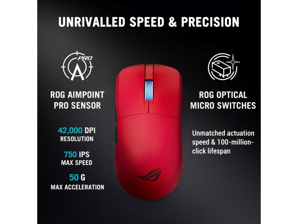ASUS Herní myš ROG Harpe II Ace, Bezdrátová, červená 90MP0490-BMUA20 Asus