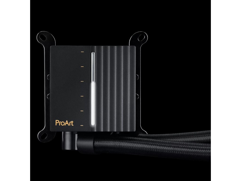 ASUS ProArt LC 420 Vodní chladič procesoru ProArt LC 420 typu vše v jednom s osvětleným ukazatelem stavu systému a třemi 140mm ventilátory chladiče Noctua NF-A14 industrial PPC-2000 PWM *140mm ventilátory chladiče Noctua NF-A14 industrialPPC-2000 PWM poskytují vysoký průtok vzduchu s minimální hlučností *Výkonný třífázový motor nabízí vynikající chladicí schopnosti a tišší provoz *Podsvícený měřič indikuje zatížení systému, teploty a otáčky ventilátoru *450 mm zesílených trubic s opletením nabízí odolnost, flexibilitu a kompatibilitu s PC skříněmi *Silnější chladič s větším zásobníkem chladicí kapaliny, který zajišťuje vyšší chladicí výkon *Minimalistický design dokonale doplňuje vzhled komponent rodiny ProArt. Vodní blok: Rozměry vodního bloku:78 x 78 x 49 mm Materiál produktu (CPU Plate):Měď Chladič: Rozměry chladiče: 456 x 140 x 30 mm Materiál chladiče: Hliník Hadice: Opletené gumové hadice Délka hadic: 450 mm Ventilátor: Ventilátor: Noctua NF-A14 IndustrialPPC 2000 PWM Fan - Rozměry: 3 x Fan Slots (140mm) - Rozměry: 140 x 140 x 25 mm - Rychlost: 800 - 2000 RPM +/- 10% - Statický tlak: 4.18 mmH2O - Proudění vzduchu: 107 CFM / 182.5 m3/h - Hluk: 31.5 dB(A) - Režim ovládání: PWM / STEJNOSMĚRNÝ PROUD Kompatibilita: AMD: AM5,AM4 Intel: LGA 1851, 1700, 1200, 115x Obsah balení: x Kapalný chladicí systém pro CPU (předaplikovaná tepelná pasta) Kabel na rozdělení ventilátorů 1-až-3 1 x stručný průvodce 1 x sada příslušenství se šroubky a držáky Odkaz na oficiální web: https://www.asus.com/cz/motherboards-components/cooling/proart/proart-lc-420/