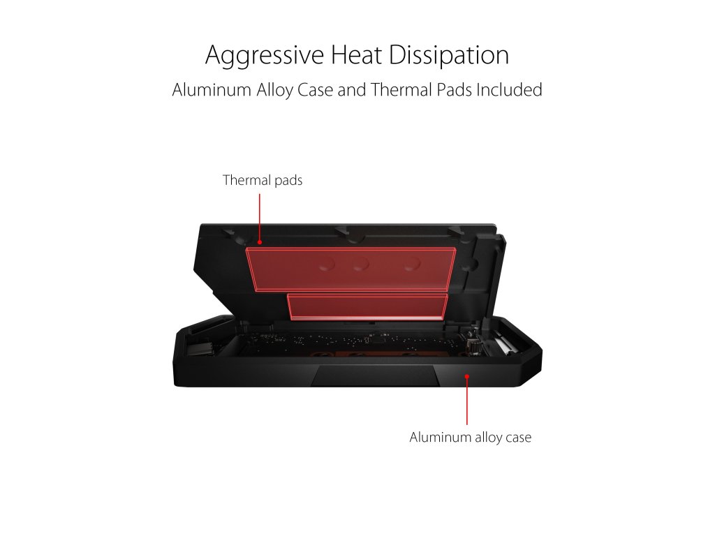 ASUS ROG STRIX ARION SSD NVME AURA case, USB-C 3.2, M.2 NVMe SSD kovový box, dĺžka 30-80 mm, AURA RGB 90DD02H0-M09000 Asus