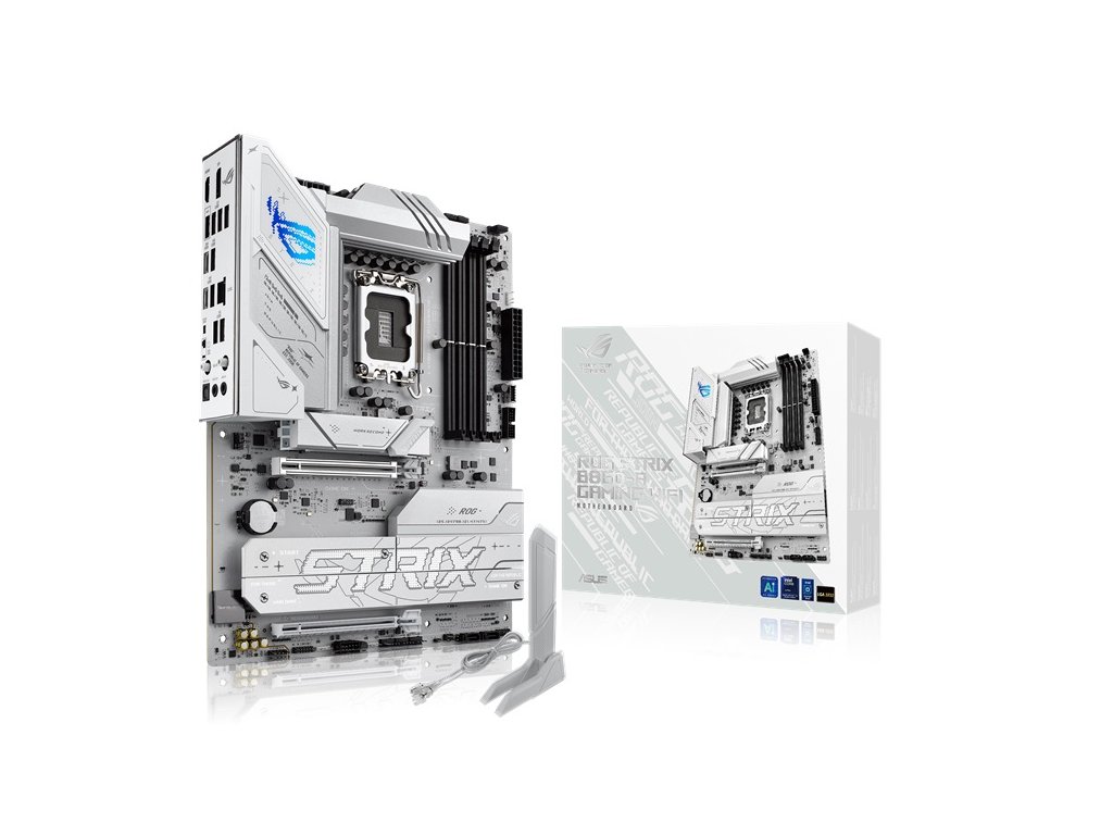 ASUS ROG STRIX B860-A GAMING WIFI * ATX Form Factor CPU: Support Intel® Core™ Ultra Processors (Series 2), Supports Intel® Turbo Boost Technology 2.0 and Intel® Turbo Boost Max Technology 3.0 Chipset: Intel® B860 Chipset Paměť: 4 x sloty DIMM, max. 192 GB, DDR5 - Podporuje až 9066+MT/s (OC), Non-ECC Un-buffered ,Clocked Unbuffered DIMM (CUDIMM) *Dvoukanálová paměťová architektura *DIMM Fit *Podporuje paměťový modul Intel® Extreme Memory Profile (XMP) *ASUS Enhanced Memory Profile III(AEMPIII) Grafické porty: *1 x DisplayPort *1 x HDMI™ port *1 x USB4® (20Gbps) ports support USB Type-C® display outputs Rozšiřující sloty: Intel® Core™ Ultra Processors (Series 2) *1 x PCIe 5.0 x16 slot Intel® B860 Chipset *1 x PCIe 4.0 x16 slot (supports x4 mode) Úložný prostor: Total supports 4 x M.2 slots and 4 x SATA 6Gb/s ports Intel® Core™ Ultra Processors (Series 2) *M.2_1 slot (Key M), type 2242/2260/2280 (supports PCIe 5.0 x4 mode) Intel® B860 Chipset *M.2_2 slot (Key M), type 2280 (supports PCIe 4.0 x4 mode) *M.2_3 slot (Key M), type 2280/22110 (supports PCIe 4.0 x4 mode) *M.2_4 slot (Key M), type 2280 (supports PCIe 4.0 x4 mode) *4 x SATA 6Gb/s ports Ethernet: *1 x Intel® 2.5Gb Ethernet *ASUS LANGuard Připojení a Bluetooth: *Wi-Fi 7* *2x2 Wi-Fi 7 (802.11be) *Supports 2.4/5/6GHz frequency band *Supports Wi-Fi 7 160MHz bandwidth, up to 2.9Gbps transfer rate. *Bluetooth® v5.4 USB: Zadní USB (Total 7 ports) *1 x USB4® (20Gbps) port (1 x USB Type-C®) *3 x USB 10Gbps ports (2 x Type-A + 1 x USB Type-C®) *2 x USB 5Gbps ports (2 x Type-A) *4 x USB 2.0 ports (4 x Type-A) Přední USB (Total 7 ports) *1 x USB 10Gbps connector (supports USB Type-C®) *1 x USB 5Gbps header supports 2 additional USB 5Gbps ports *1 x USB 2.0 header supports 2 additional USB 2.0 ports Audio: Realtek ALC1220P 7.1 Surround Sound High Definition Audio CODEC *SupremeFX Shielding Technology *Savitech SV3H712 AMP *Rear optical S/PDIF out port *Premium audio capacitors *Dedicated audio PCB layers *Audio cover Vstupy/výstupy zadního panelu: *1 x USB4® (20Gbps) port (1 x USB Type-C®) *3 x USB 10Gbps ports (2 x Type-A + 1 x USB Type-C®) *2 x USB 5Gbps ports (2 x Type-A) *4 x USB 2.0 ports (4 x Type-A) *1 x DisplayPort *1 x HDMI™ port *1 x Wi-Fi module *1 x Intel® 2.5Gb Ethernet port *2 x Audio jacks *1 x Optical S/PDIF out port *1 x BIOS FlashBack™ button *1 x Clear CMOS button Interní vstupy/výstupy: Ventilátory a chlazení: *1 x 4-pin CPU Fan header *1 x 4-pin CPU OPT Fan header *1 x 4-pin AIO Pump header *4 x 4-pin Chassis Fan headers Napájení: *1 x 24-pin Main Power connector *2 x 8-pin +12V CPU Power connector Úložiště: *4 x M.2 slots (Key M) *4 x SATA 6Gb/s ports USB: *1 x USB 10Gbps connector (supports USB Type-C® ) *1 x USB 5Gbps header supports 2 additional USB 5Gbps ports *1 x USB 2.0 header supports 2 additional USB 2.0 ports Různé: *3 x Addressable Gen2 header(s) *1 x Front Panel Audio header (F_AUDIO) *1 x 10-1 pin Front System Panel header *1 x Thermal Sensor header *1 x Thunderbolt™ (USB4®) header Příslušenství: Kabely: *2 x SATA 6Gb/s cables Různé: *1 x ASUS WiFi Q-Antenna *1 x Cable ties package *1 x M.2 Q-Latch *1 x M.2 Q-Slide *1 x ROG Strix stickers *4 x M.2 rubbers Dokumenty: *1 x Quick start guide
