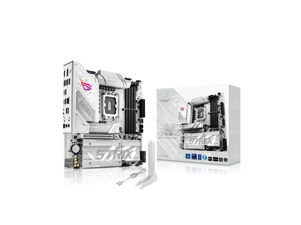 ASUS ROG STRIX B860-G GAMING WIFI * mATX Form Factor CPU: Support Intel® Core™ Ultra Processors(Series 2) LGA1851, Supports Intel® Turbo Boost Technology 2.0 and Intel® Turbo Boost Max Technology 3.0 Chipset: Intel® B860 Chipset Paměť: 4 x sloty DIMM, max. 192 GB, DDR5 - Podpora až 9066+MT/s (OC), Non-ECC, Un-buffered ,Clocked Unbuffered DIMM (CUDIMM) *Dvoukanálová paměťová architektura *Podpora paměťového modulu Intel® Extreme Memory Profile (XMP) *ASUS Enhanced Memory Profile III(AEMPIII) Grafické porty: *1 x DisplayPort *1 x HDMI™ port *1 x Intel® Thunderbolt™ 4 supports DisplayPort and Thunderbolt™ video outputs Rozšiřující sloty: Intel® Core™ Ultra Processors(series 2) *1 x PCIe 5.0 x16 slot Úložný prostor: Total Supports 4 x M.2 slots and 4 x SATA 6Gb/s ports Intel® Core™ Ultra Processors(series 2) *M.2_1 slot (Key M), type 2242/2260/2280 (supports PCIe 5.0 x4 mode) Intel® B860 Chipset *M.2_2 slot (Key M), type 2280 (supports PCIe 4.0 x4) *M.2_3 slot (Key M), type 2280 (supports PCIe 4.0 x4) *M.2_4 slot (Key M), type 2230/2280 (supports PCIe 4.0 x4) *4 x SATA 6Gb/s ports Ethernet: *1 x Intel® 2.5Gb Ethernet Připojení a Bluetooth: *Wi-Fi 7 *2x2 Wi-Fi 7 (802.11be) *Supports 2.4/5/6GHz frequency band *Supports Wi-Fi 7 160MHz bandwidth, up to 2.9Gbps transfer rate. *Bluetooth® v5.4 USB: Zadní USB (Total 7 ports) *1 x Thunderbolt™ 4 port (1 x USB Type-C®) *1 x USB 20Gbps port(s) (1 x USB Type-C®) *1 x USB 10Gbps port(s) (1 x Type-A) *3 x USB 5Gbps port(s) (3 x Type-A) *4 x USB 2.0 port(s) (4 x Type-A) Přední USB (Total 7 ports) *1 x USB 10Gbps connector *1 x USB 5Gbps header(s) support(s) 2 additional USB 5Gbps ports *2 x USB 2.0 header(s) support(s) 3 additional USB 2.0 ports Audio: Realtek ALC1220P 7.1 Surround Sound High Definition Audio CODEC *SupremeFX Shielding Technology *Savitech SV3H712 AMP *Rear optical S/PDIF out port *Premium audio capacitors *Audio cover Vstupy/výstupy zadního panelu: *1 x Thunderbolt™ 4 USB Type-C® port(s) *1 x USB 20Gbps port(s) (1 x USB Type-C® with DP Alt mode) *1 x USB 10Gbps port(s) (1 x Type-A) *3 x USB 5Gbps port(s) (3 x Type-A) *4 x USB 2.0 port(s) (4 x Type-A) *1 x DisplayPort *1 x HDMI™ port *1 x Wi-Fi module *1 x Intel® 2.5Gb Ethernet port *2 x Audio jacks *1 x Optical S/PDIF out port *1 x BIOS FlashBack™ button *1 x Clear CMOS button Interní vstupy/výstupy: Ventilátory a chlazení: *1 x 4-pin CPU Fan header(s) *1 x 4-pin CPU OPT Fan header(s) *1 x 4-pin AIO Pump header(s) *2 x 4-pin Chassis Fan header(s) Napájení: *1 x 24-pin Main Power connector *2 x 8-pin +12V CPU Power connector Úložiště: *4 x M.2 slots (Key M) *1 x M.2 Vertical slot (Key M) *4 x SATA 6Gb/s ports USB: *1 x USB 10Gbps connector (support(s) USB Type-C® ) *1 x USB 5Gbps header(s) support(s) 2 additional USB 5Gbps ports *2 x USB 2.0 header(s) support(s) 3 additional USB 2.0 ports Různé: *3 x Addressable Gen 2 header(s) *1 x Front Panel Audio header (F_AUDIO) *1 x 10-1 pin Front System Panel header *1 x Thermal Sensor header Příslušenství: Kabely: *2 x SATA 6Gb/s cables Různé: *1 x ASUS WiFi Q-Antenna *1 x Cable ties package *1 x M.2 Q-Latch package(s) *1 x M.2 Q-Slide package *1 x ROG key chain *1 x ROG Strix sticker *3 x M.2 rubber package(s) *1 x M.2 backplate rubber package(s) Dokumenty: *1 x Quick start guide