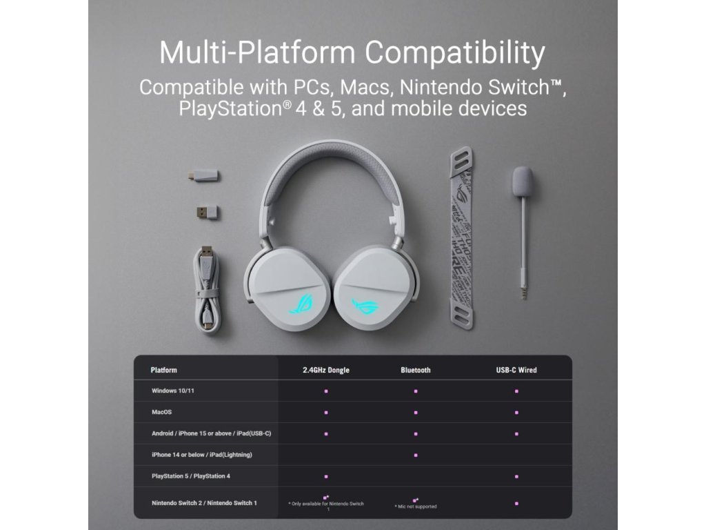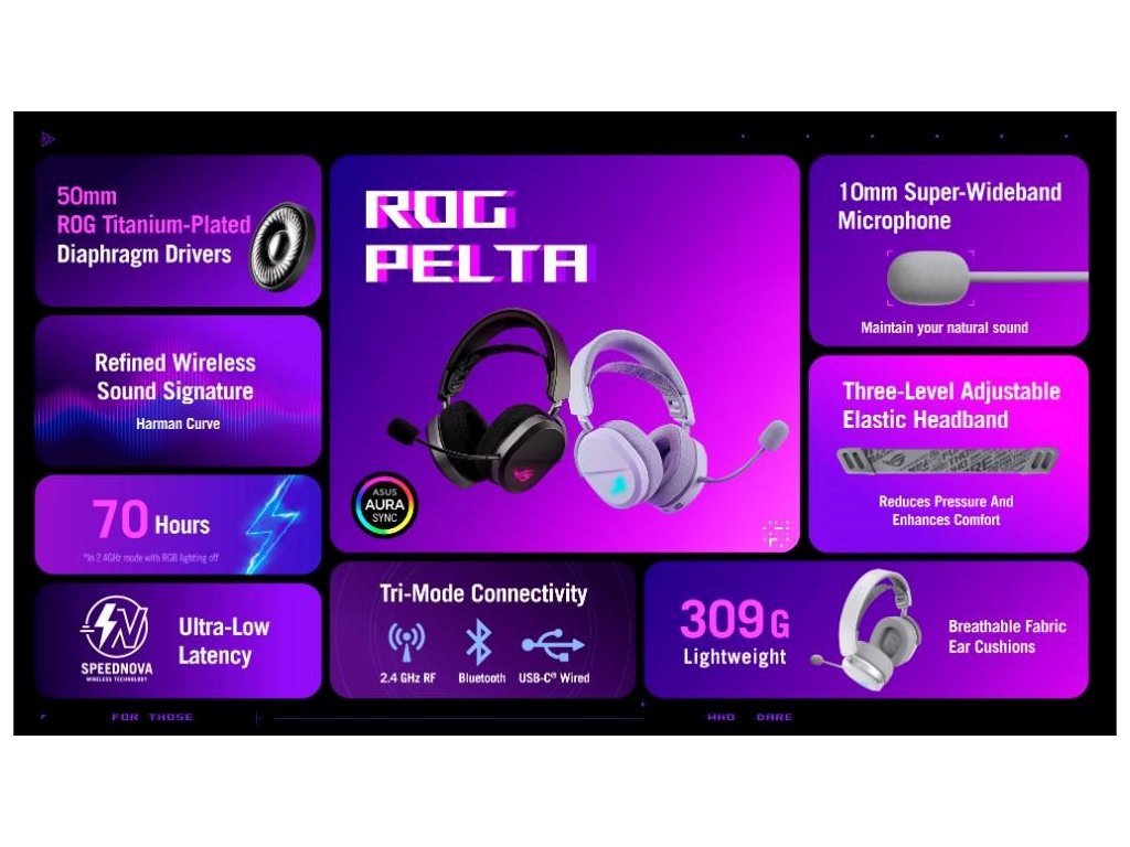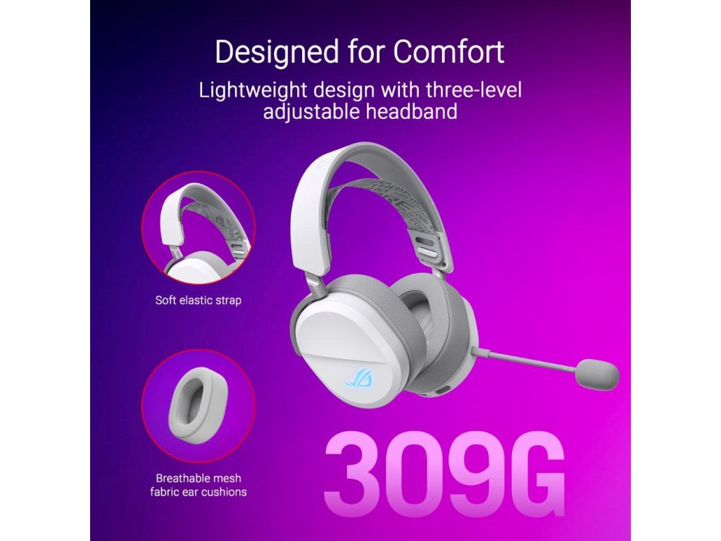 ASUS sluchátka ROG Pelta, Bezdrátové BT a RF 2.4GHz, ARGB, bílá 90YH0410-BHUA10 Asus
