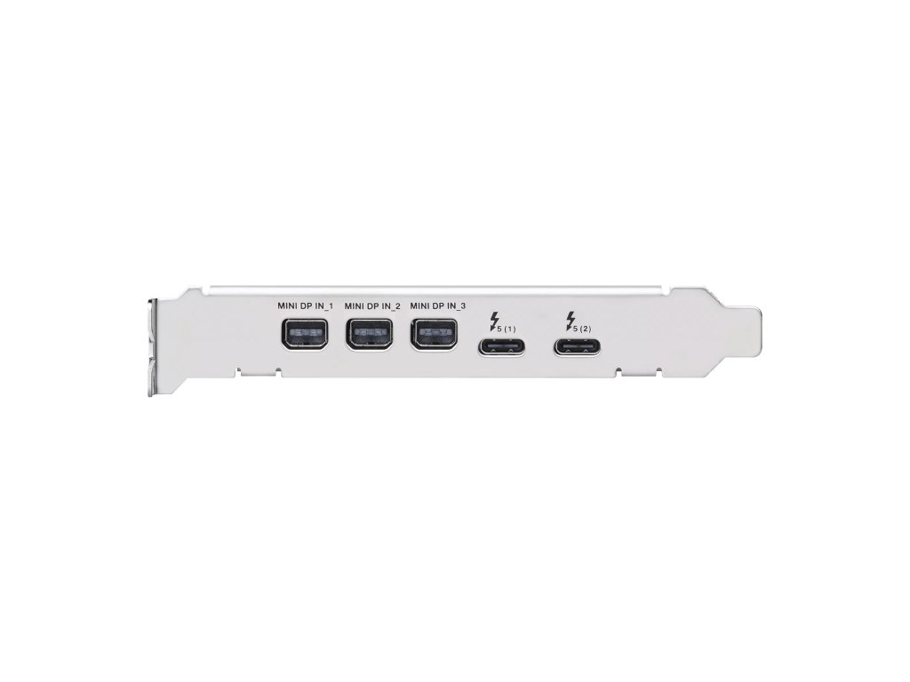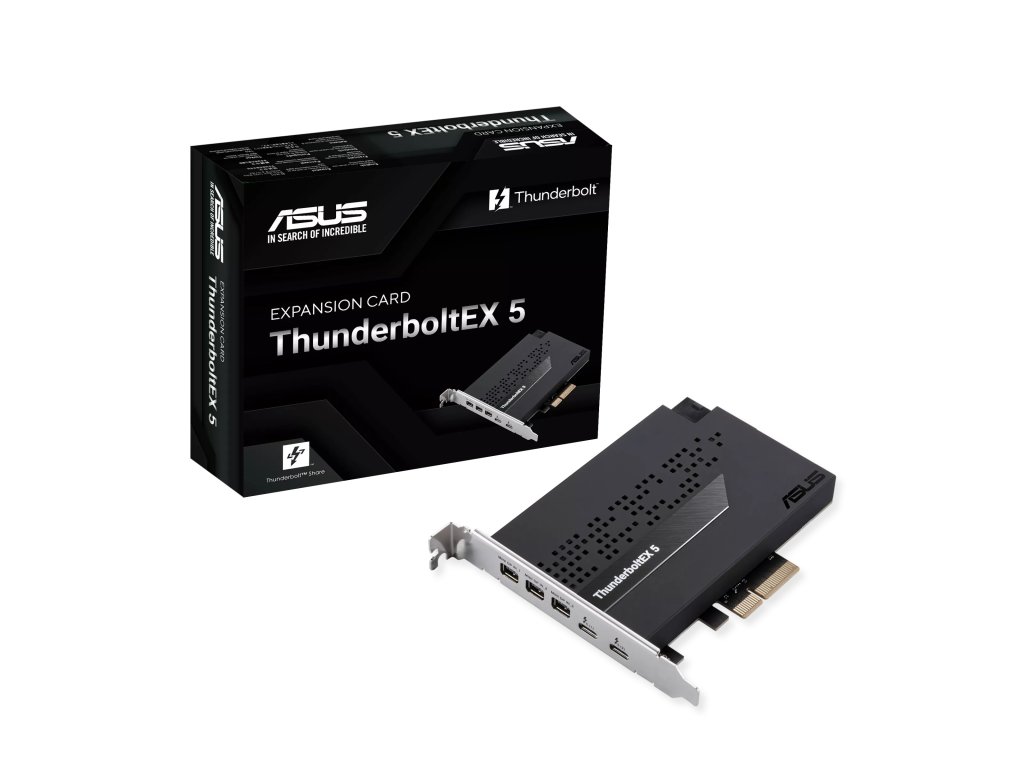 rozšiřující karta ASUS ThunderboltEX 5 přídavná karta Thunderbolt™ 5 s certifikací Intel® Karta ASUS ThunderboltEX 5 nabízí šířku pásma až 120 Gb/s Thunderbolt™ 5, podporu DisplayPort™ 2.1 s kompatibilním GPU, kompatibilitu s USB4® a navíc podporu až pěti zařízení Thunderbolt™. * bezproblémové sdílení mezi dvěma počítači pomocí Thunderbolt™ Share * rozhraní PCIe 4.0 x 4 * 6pinový napájecí konektor PCIe pro funkci Flexible FastCharge * podpora až 3x 8K@60Hz s DSC podle specifikace DisplayPort 2.1 Čipset: Intel® JHL9580 Thunderbolt 5 Externí porty: * 2x USB typ C® – až 120 Gb/s pro zařízení Thunderbolt™ a USB4® – podpora 1x USB typ C® a 1x USB typ C® až celkem 130 W s Flexibilní funkce FastCharge – výstupní napájení USB typ C®: max. 20V/4,8A * 3x mini DisplayPort IN * 1x 6kolíkový napájecí konektor PCIe pro flexibilní funkci FastCharge * 1x USB 2.0 header * 1x Thunderbolt™ header Rozhraní: PCIe 4.0 x4 Rozměry: 119,5x88,9mm Příslušenství: * 1x kabel Thunderbolt * 1x kabel USB 2.0 * 3x kabel miniDP na DP * 1x uživatelská příručka Odkaz na stránku výrobce: https://www.asus.com/motherboards-components/motherboards/accessories/thunderboltex-5/