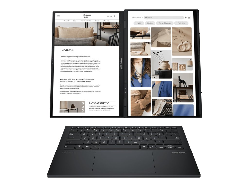 ASUS Zenbook Duo (UX8406CA) revoluční notebook se dvěma dotykovými OLED displeji, odnímatelnou klávesnicí a integrovaným stojánkem * pouzdro na Zenbook * armádní standard MIL-STD 810H Operační systém: Windows® 11 Pro Procesor: Intel Core Ultra 9 285H (16 jader - 6P + 8E + 2LPE, 16 vláken, P-core 2,9/5,4 GHz, E-core 2,7/4,5 GHz, LPE-core 1,0/2,5 GHz, 24 MB cache) Neural procesor: Intel® AI Boost, až 13TOPS Paměť: 32GB LPDDR5X na základní desce Počet slotů (celkem/volných): bez slotů (0/0) Maximální velikost: 32GB Pevný disk: 2TB M.2 NVMe™ PCIe® 4.0 SSD Rozšiřující sloty pevného disku: 1x M.2 2280 PCIe 4.0x4 Optická mechanika: ne Čtečka paměťových karet: ne Displej: 2x dotykový 14'' 3K (2880X1800) 16:10 OLED, lesklý, 120Hz, 0,2ms, 400 nitů, DCI-P3 100%, VESA Display HDR True Black 500 Grafická karta: Intel Arc 140T Audio: 2x repro, technologie Smart Amp, mikrofon Web kamera: FHD s IR Polohovací zařízení: Precision Touchpad Podsvícená klávesnice: ne Numerická klávesnice: ne Čtečka otisků prstů: ne Pero: ano (podpora ASUS Pen SA203H-MPP2.0) Síť: ne Bezdrátová komunikace: WLAN + Bluetooth (Wi-Fi 7, 802.11be, třípásmová, 2*2 + Bluetooth® 5.4) Porty USB: * 1x USB 3.2 Gen 1 typu A (až 5Gb/s) * 2x Thunderbolt™ 4 (až 40Gb/s) s podporou DP/PD Další porty: * 1x HDMI 2.1 TMDS * 1x kombinovaný konektor pro sluchátka/mikrofon (3,5mm) Zabezpečení: Trusted Platform Module (TPM) 2.0, infračervená webkamera s podporou Windows Hello Baterie: 75Wh, 4S1P, 4článková Li-ion Napájení: 65W AC adaptér, USB-C Barva: šedá (Inkwell Gray) Materiál: hořčík + hliník Rozměry: 313,5x217,9x14,6-19,9mm Hmotnost: cca 1,65kg Záruka: 2 roky Dvouletá prémiová záruka ASUS Pick-up and Return pro IČO i soukromé osoby ZDARMA. Podrobnosti naleznete zde: https://www.asus.com/cz/event/bezstarostny_servis Stránky výrobce: https://www.asus.com/cz/laptops/for-home/zenbook/asus-zenbook-duo-2024-ux8406/ Nabídku kompatibilních rozšíření ke standardní záruce naleznete v souvisejícím zboží.