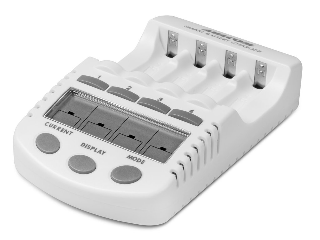Inteligentní čtyřkanálová nabíječka tužkových AA a mikrotužkových AAA baterií. Nabíjí Ni-MH a Ni-Cd baterie. Nabíjecí proud 200, 500, 700, a 1000mA.
