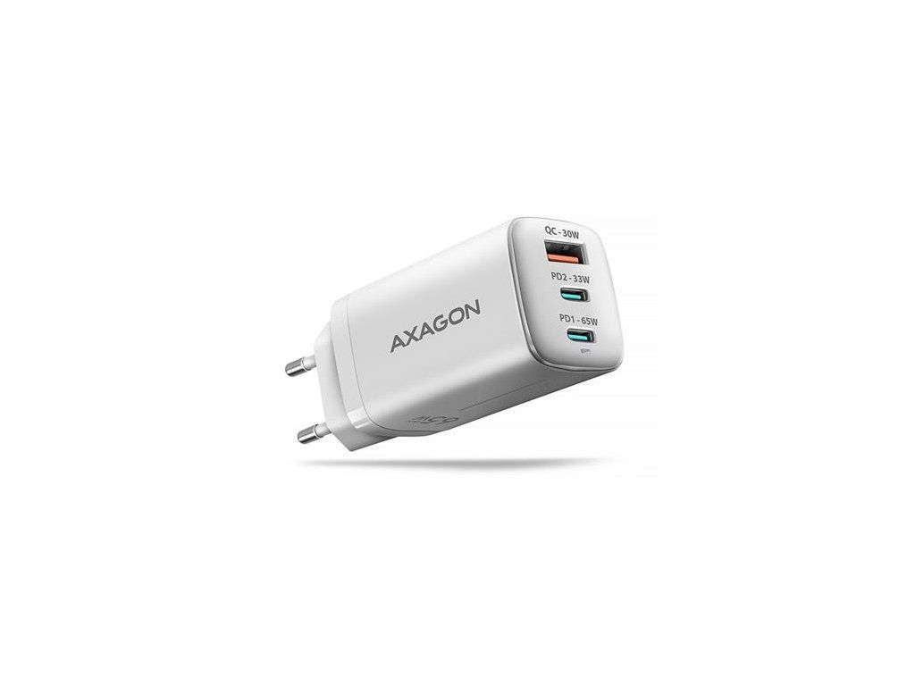 AXAGON ACU-DPQ65W, GaN nabíječka do sítě 65W, 3x port (USB-A + dual USB-C), PD3.0/QC4+/PPS/Apple Axagon
